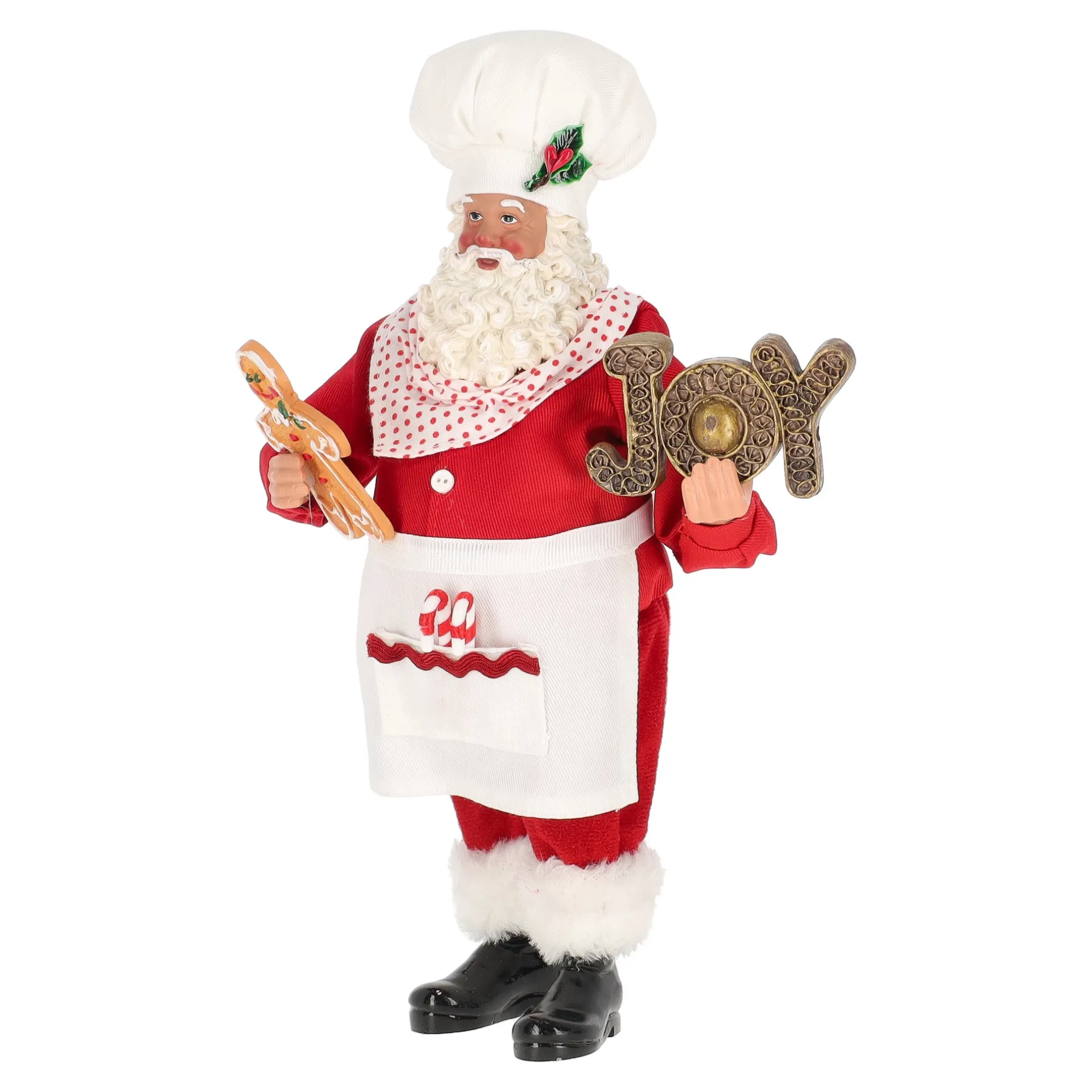 Deze gezellige kerstman brengt een vrolijke sfeer in huis. Gekleed als bakker met een witte koksmuts en schort, houdt hij een grote ‘JOY’-tekst vast en een vrolijk gingerbread-mannetje in de hand. Een leuke decoratie voor op tafel, de schouw of vensterbank tijdens de feestdagen.