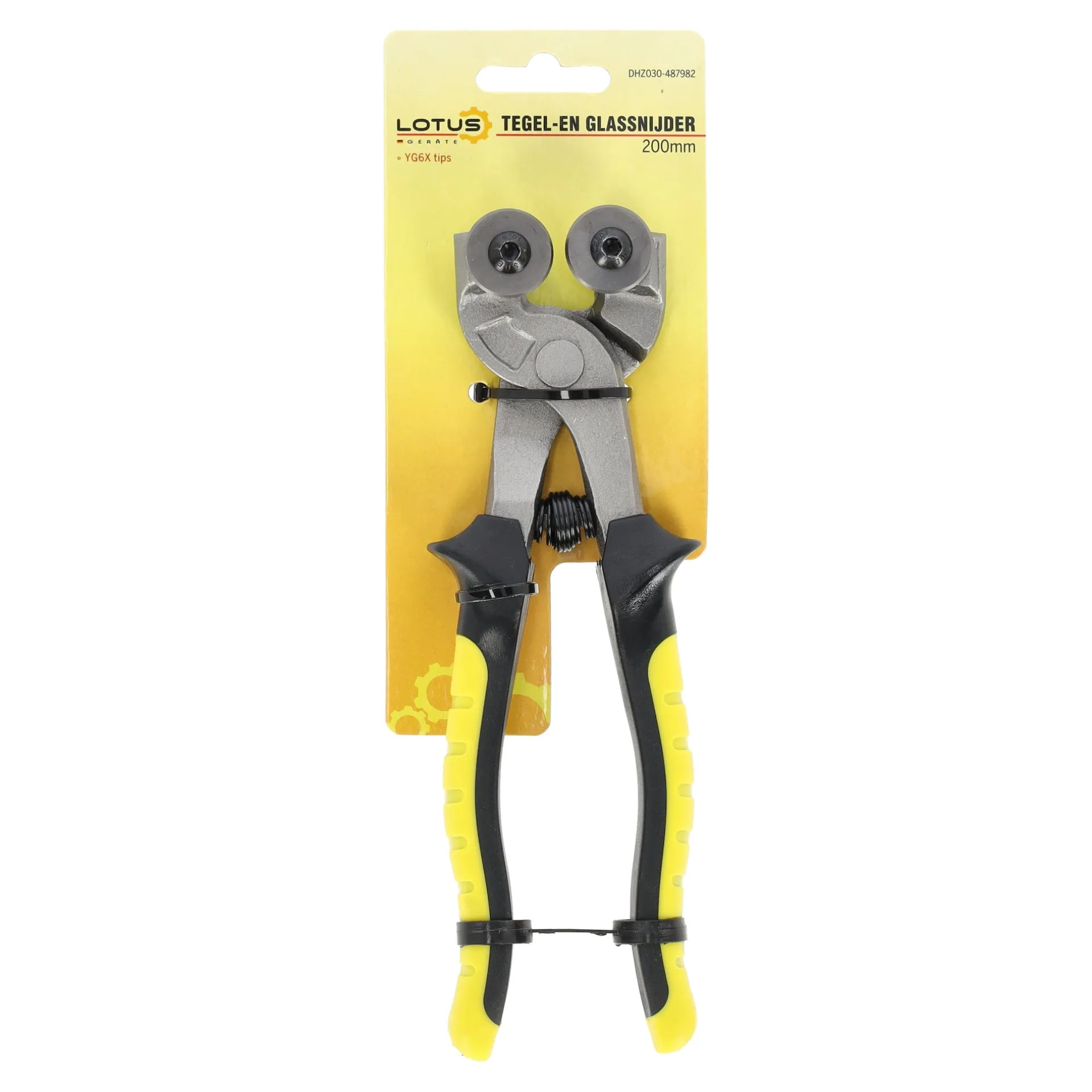 Tegel- en glassnijder van Lotus met een lengte van 200 mm, voorzien van YG6X snijwieltjes en comfortabele handgrepen voor gericht knipwerk.