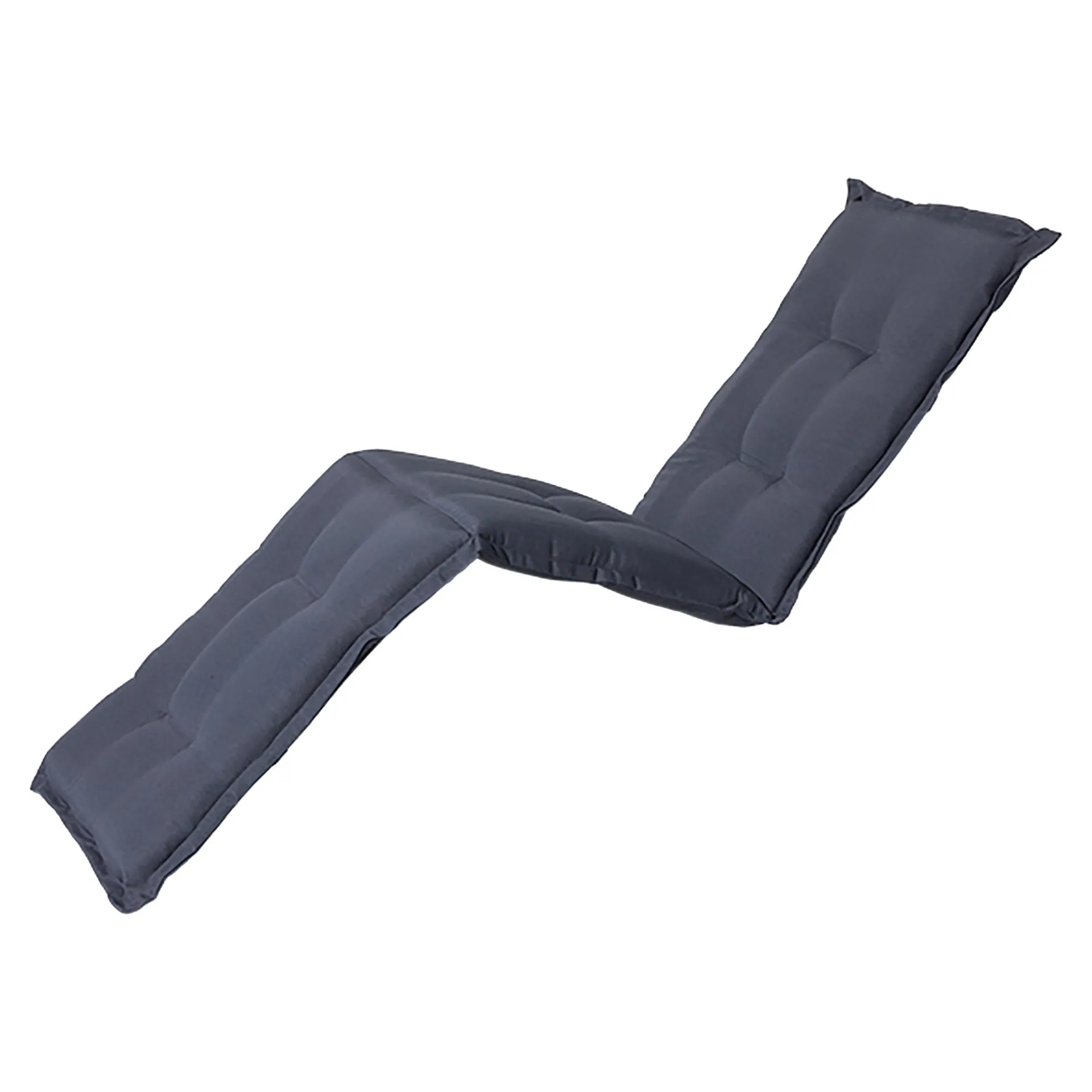 Een effen grijs Madison ligbedkussen (65×200 cm) gemaakt van 95% polyester en 5% andere stoffen. De combinatie van hittebestendigheid, ademend vermogen en duurzame materialen zorgt voor jarenlang comfortabel gebruik op uw ligstoel.