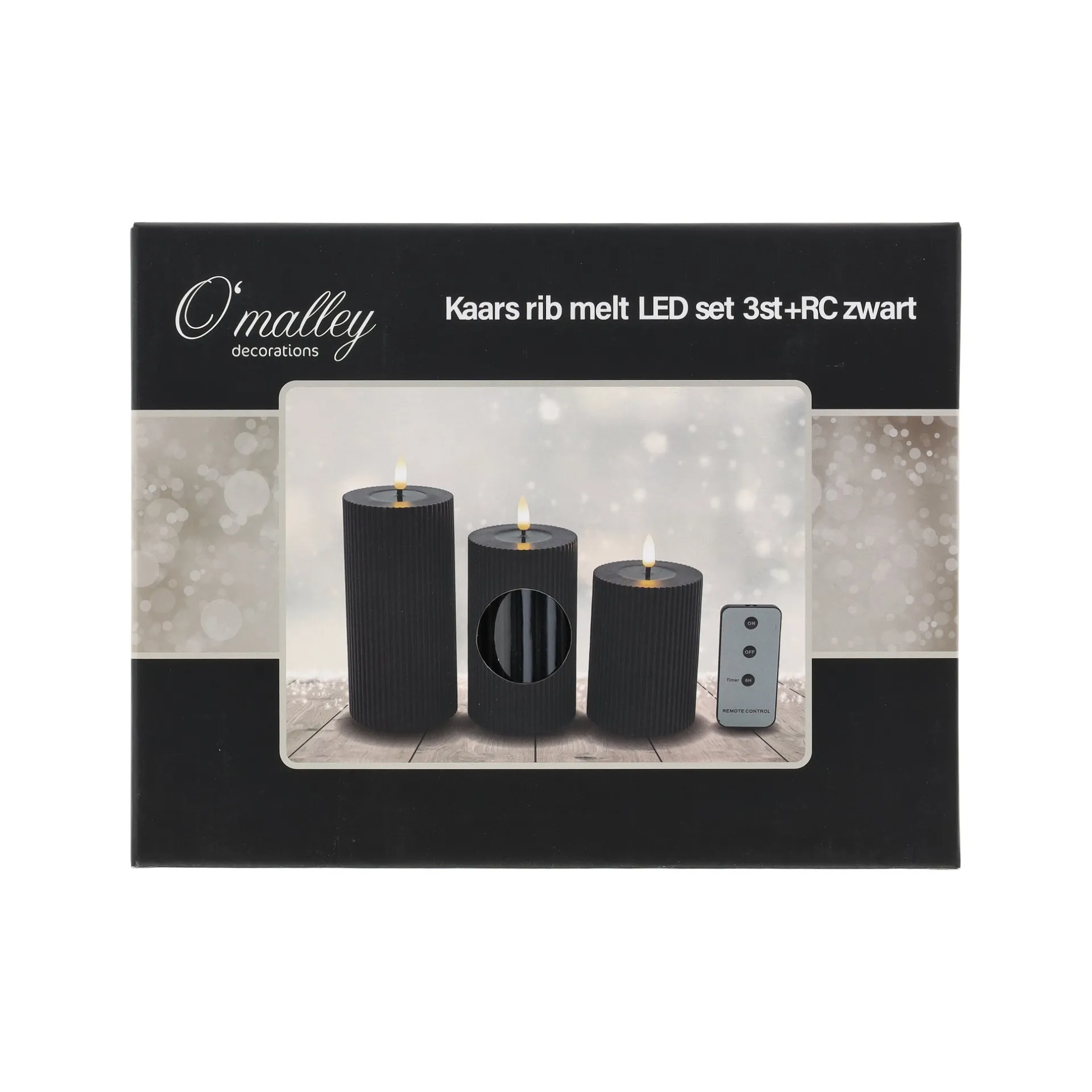 Hot O’malley LED Kaars Rib Melt 3st Zwart
