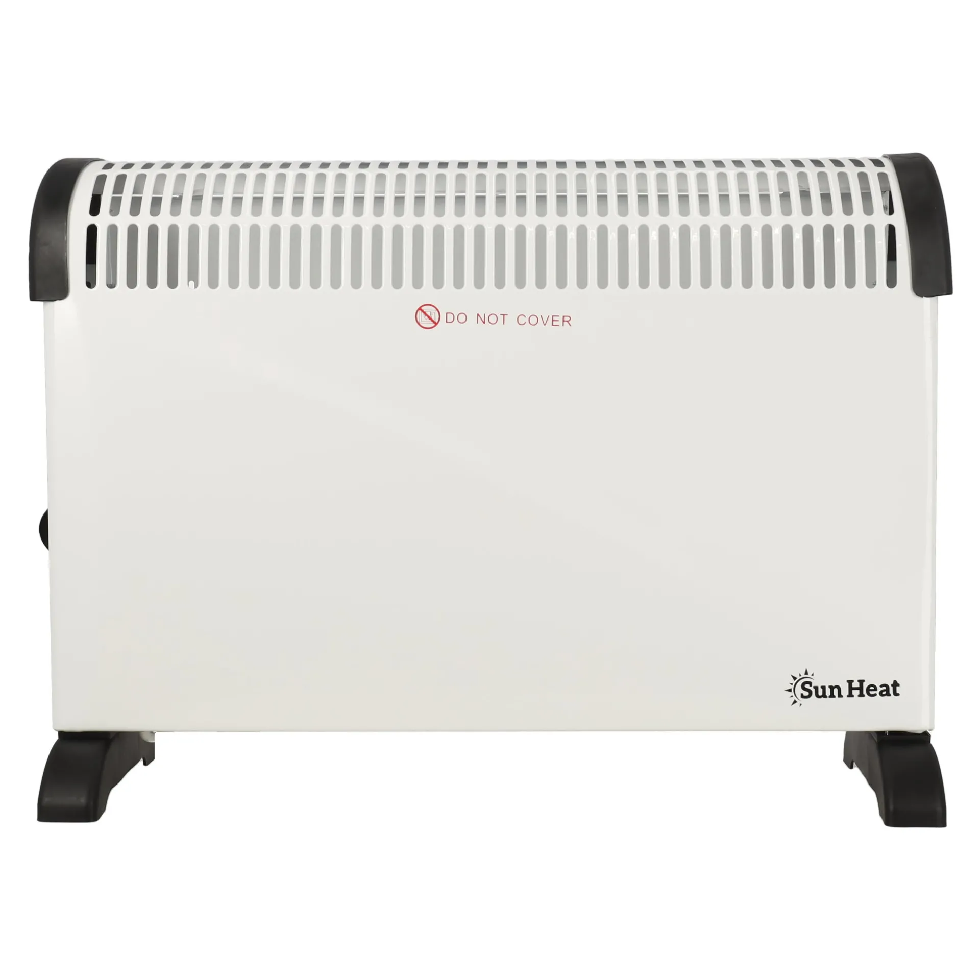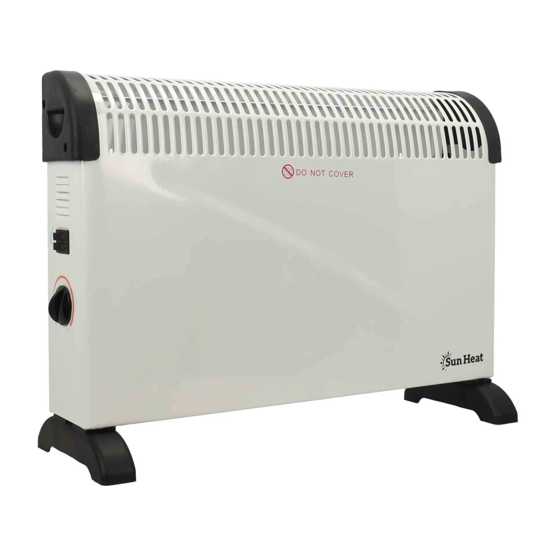 Elektrische convector met 3 standen en een vermogen van 2000 W. Deze kachel heeft een instelbare thermostaat en is eenvoudig te gebruiken om ruimtes comfortabel te verwarmen.