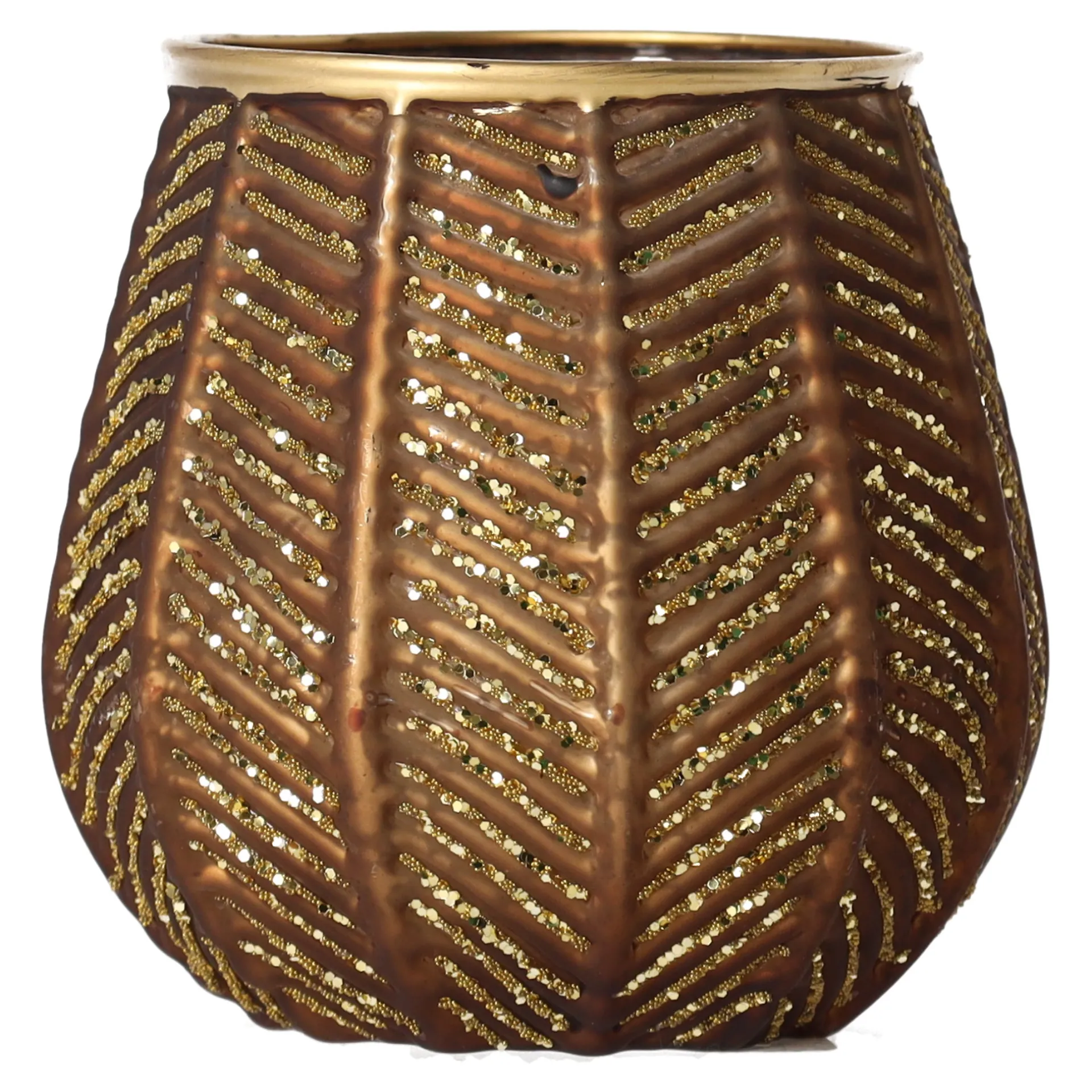 Hot Theelichthouder Glas Streep 10 X 10 Cm Bruin