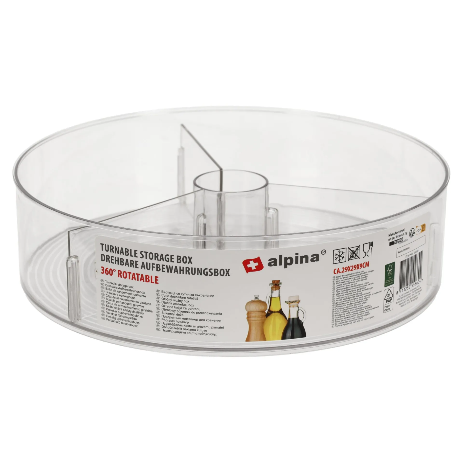 De Alpina draaibak is een bak waarin je verschillende soorten spullen kunt opbergen. Het draaibare ontwerp zorgt voor gemakkelijke toegang tot de inhoud, zelfs als de doos in een kleine ruimte staat.