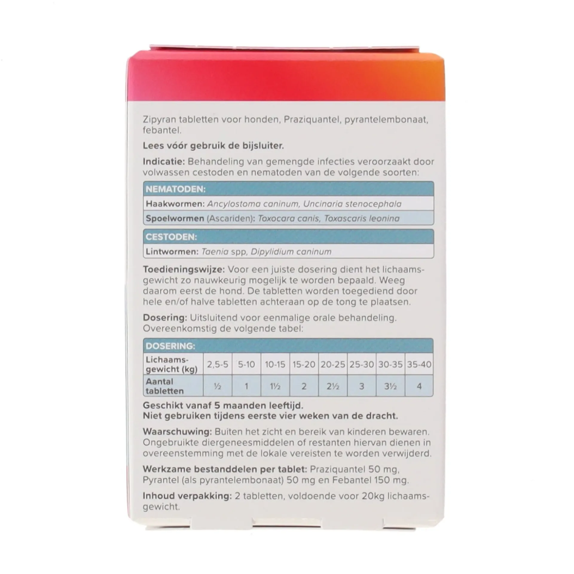Wormtabletten All-in-one hond 2,5 – 20kg is voor de behandeling van gemengde infecties veroorzaakt door volwassen cestoden en nematoden van de volgende soorten: haakwormen, spoelwormen, lintwormen. Geschikt vanaf 5 maanden leeftijd.