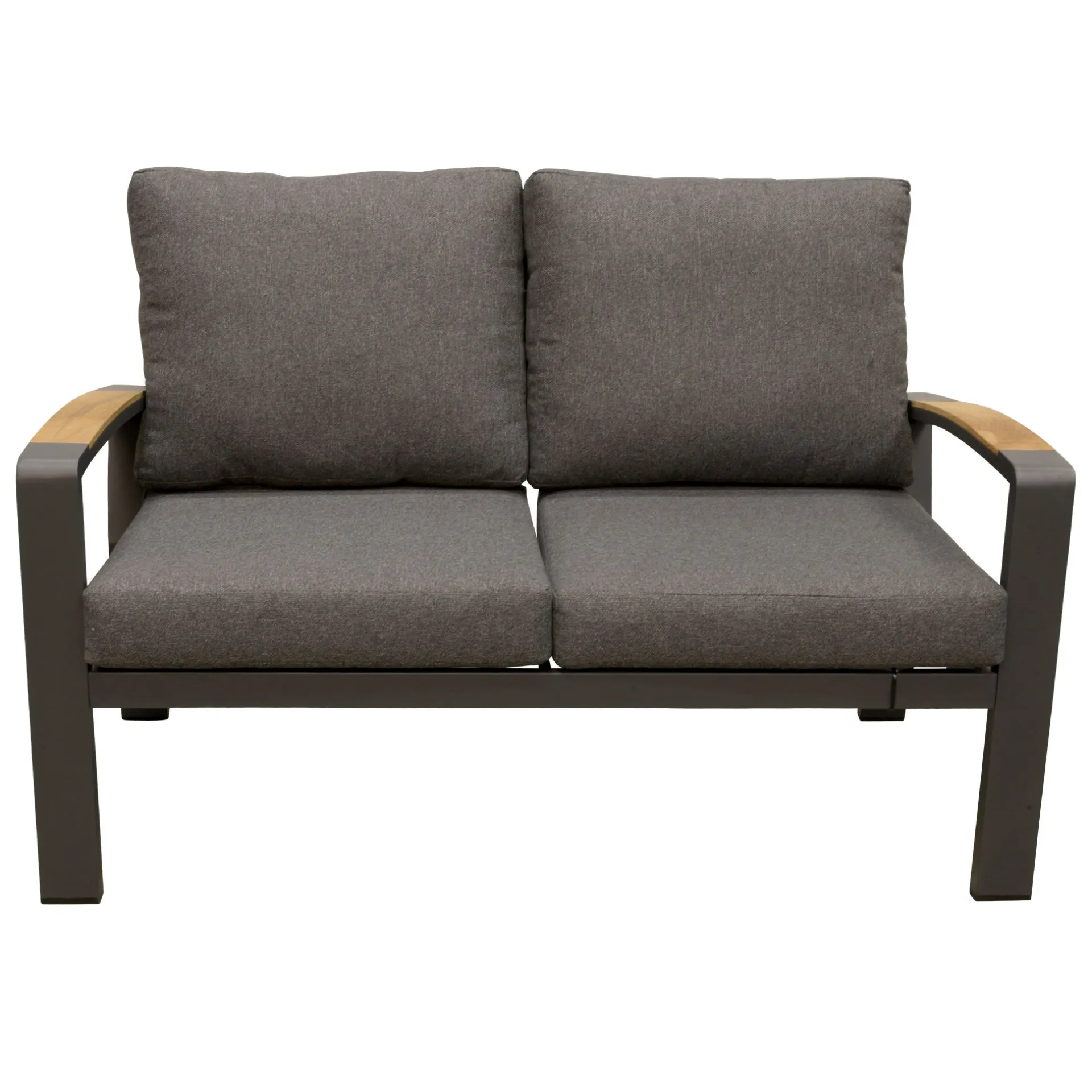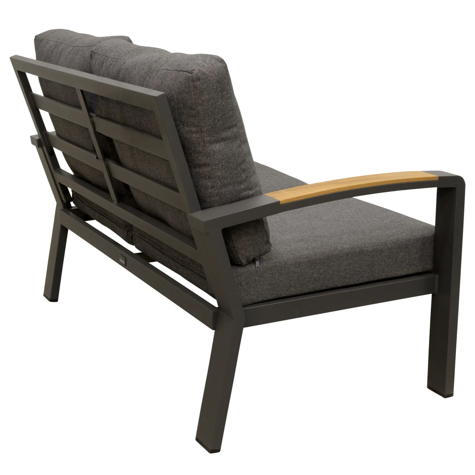 De Bank 2-zit Foxton Antra biedt een combinatie van comfort en stijl voor elke buitenruimte. Het aluminium frame is stevig en duurzaam, terwijl de teak armleuningen een warme, natuurlijke uitstraling geven. De bank wordt geleverd met zachte kussens die extra zitcomfort bieden, perfect voor tuin, terras of balkon.