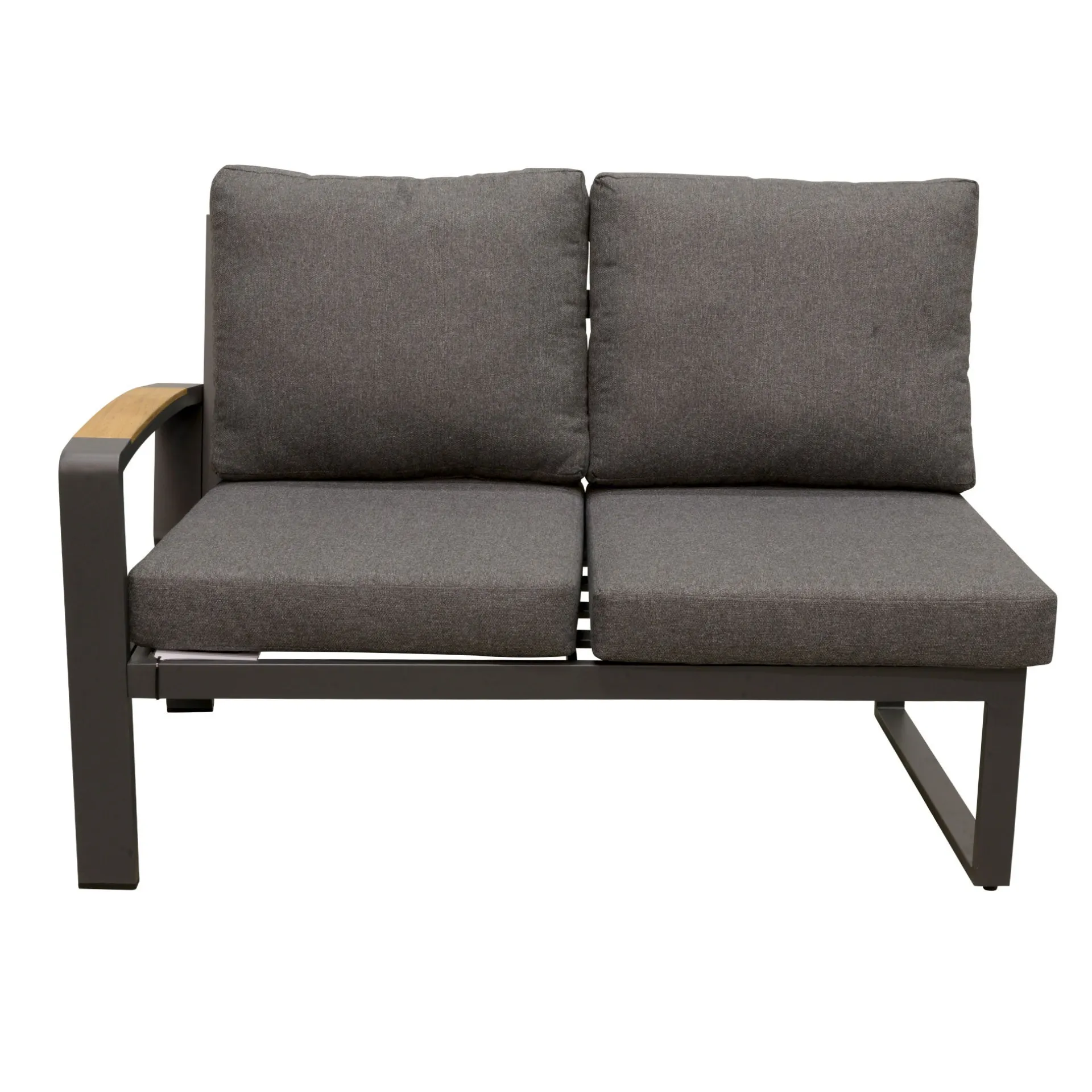 De Bank 2-zit links Foxton Antra biedt zowel comfort als stijl. Het stevige aluminium frame en de teak armleuningen met natuurlijke uitstraling maken het een ideale keuze voor buitengebruik. Inclusief comfortabele kussens, geschikt voor tuin, terras of balkon.