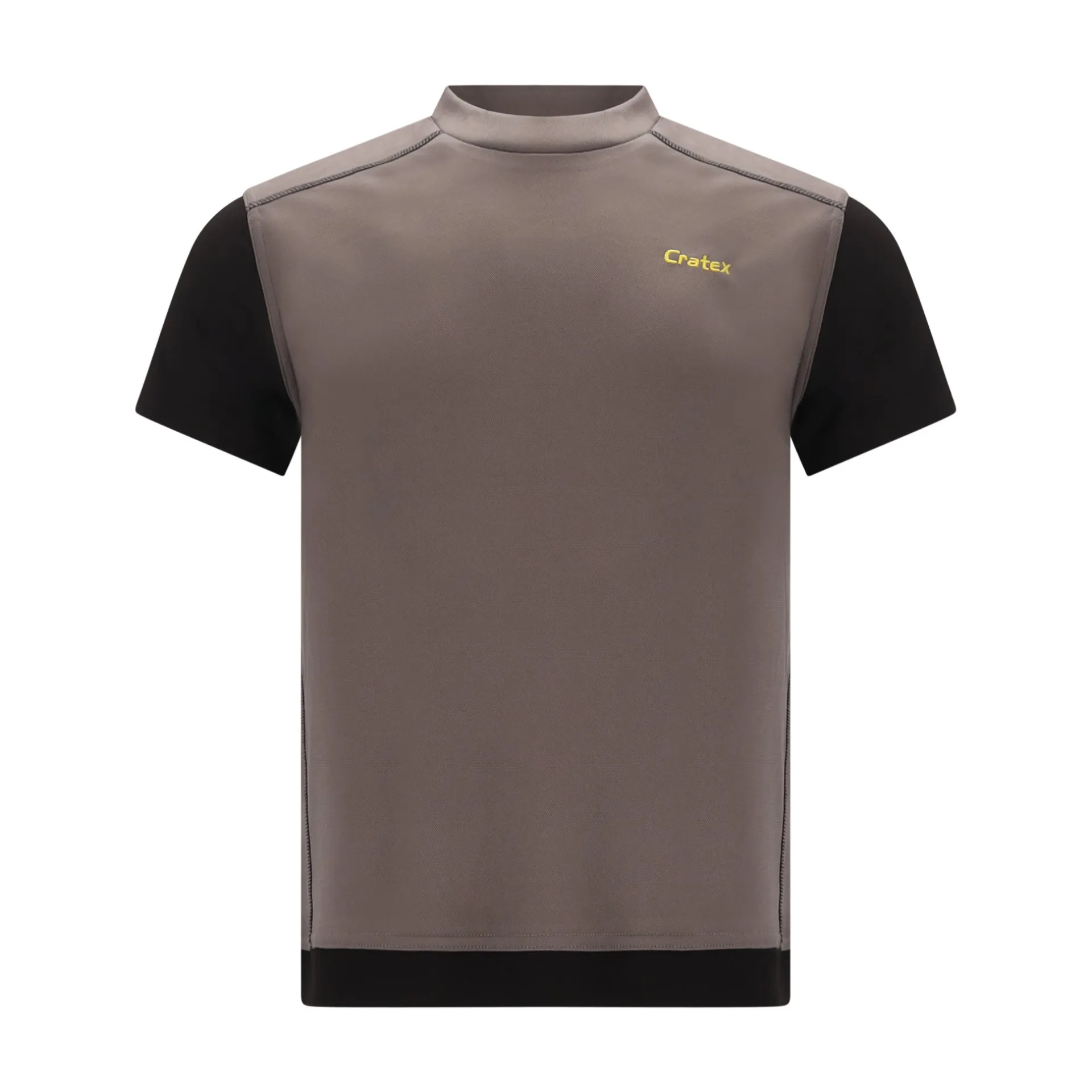 Grijs T-shirt van Cratex. Met zwarte korte mouwen en met klein logo. Verkrijgbaar in de maten XS-4XL.