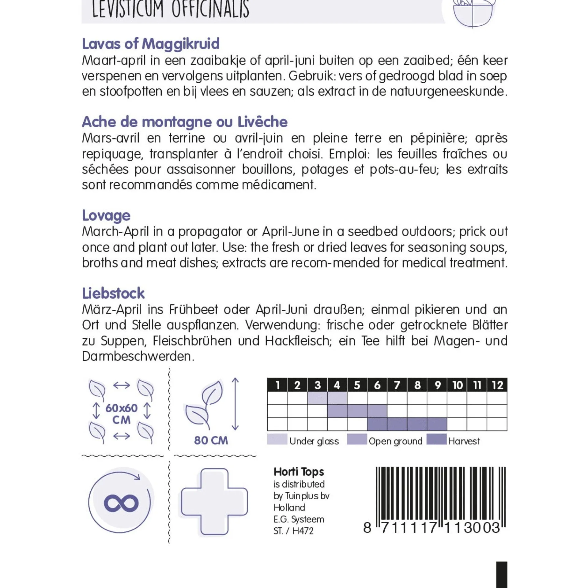 Lavas, ook wel Maggikruid genoemd, kan worden gezaaid in een zaaibakje van maart tot april of direct buiten op een zaaibed van april tot juni. Het blad is geschikt voor gebruik in soepen, stoofpotten, vleesgerechten en sauzen, en kan vers of gedroogd worden gebruikt.