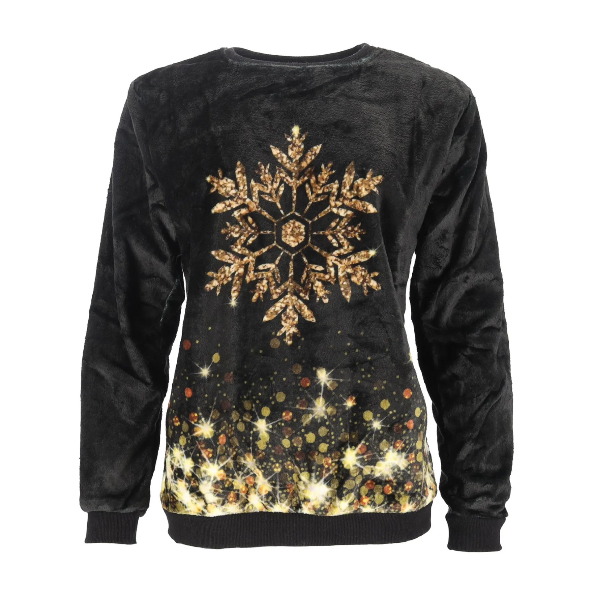 New Kersttrui Soft Sneeuwvlok Zwart Goud S