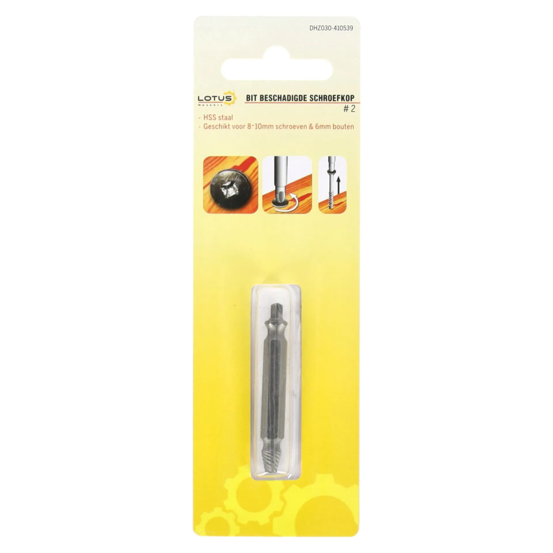 Deze bit is speciaal ontworpen voor het verwijderen van beschadigde of versleten schroeven. Gemaakt van hoogwaardig staal voor betrouwbare prestaties, zelfs onder zware omstandigheden. Geschikt voor gebruik met de meeste standaard schroefmachines en schroevendraaiers. Een onmisbaar gereedschap voor zowel professionals als doe-het-zelvers.