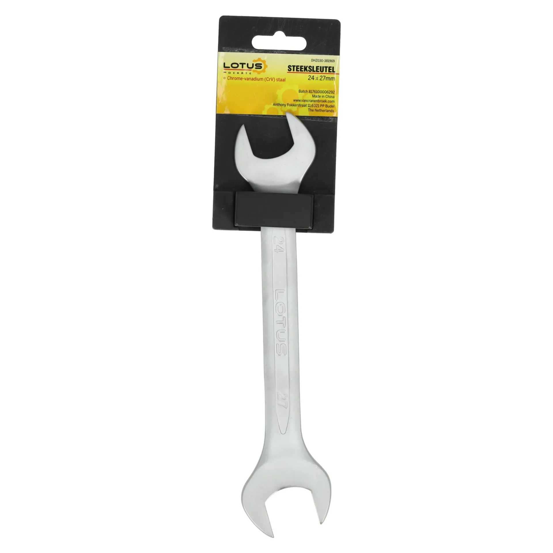 De CV Lotus steeksleutel met afmetingen van 24×27 mm is een duurzaam en betrouwbaar gereedschap van hoogwaardig chroom-vanadiumstaal. Het is ideaal voor professioneel en thuisgebruik. De ergonomische vorm zorgt voor comfort tijdens het werk en de dubbele maten van de sleutel vergroten de veelzijdigheid ervan.