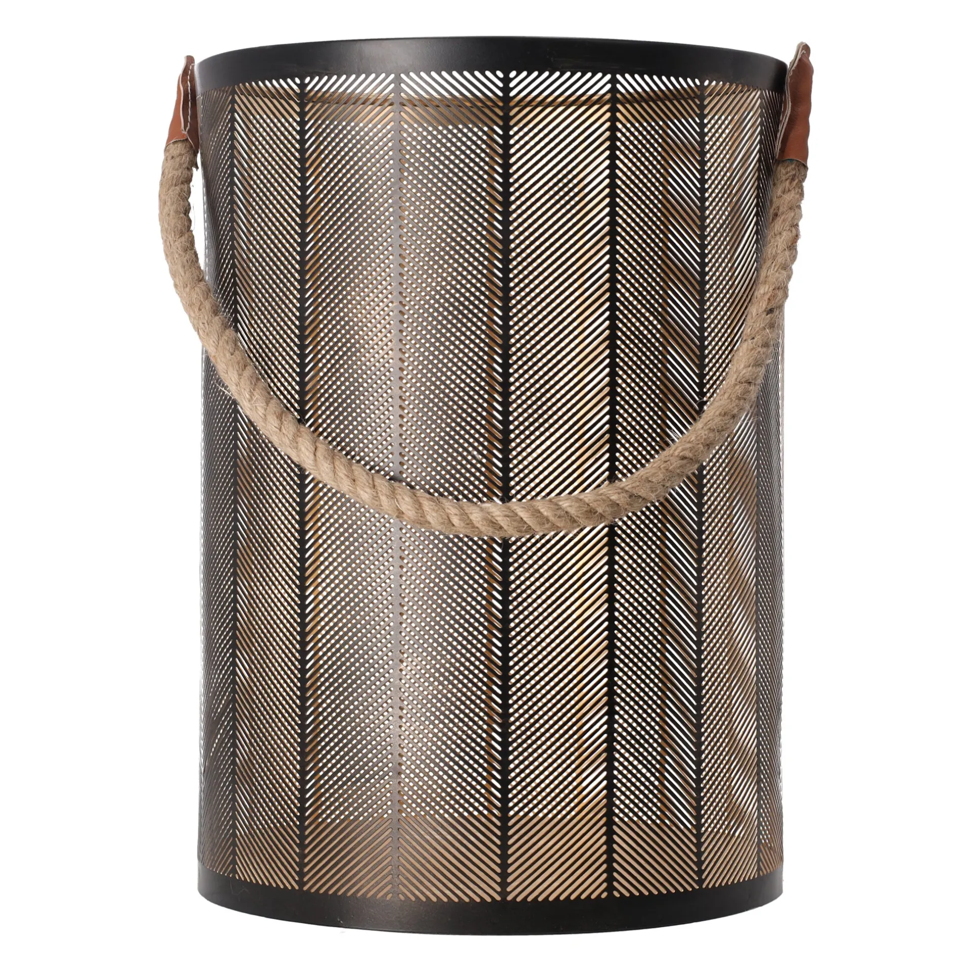 Een stijlvolle decoratie die een gezellige sfeer creƫert in huis of op het terras. Gemaakt van stevige materialen en met een mooie combinatie van zwart en goud, wat een elegante uitstraling geeft aan het interieur. Geschikt voor decoratieve kaarsen of ledlampen, waardoor de ruimte gevuld wordt met zacht en warm licht.