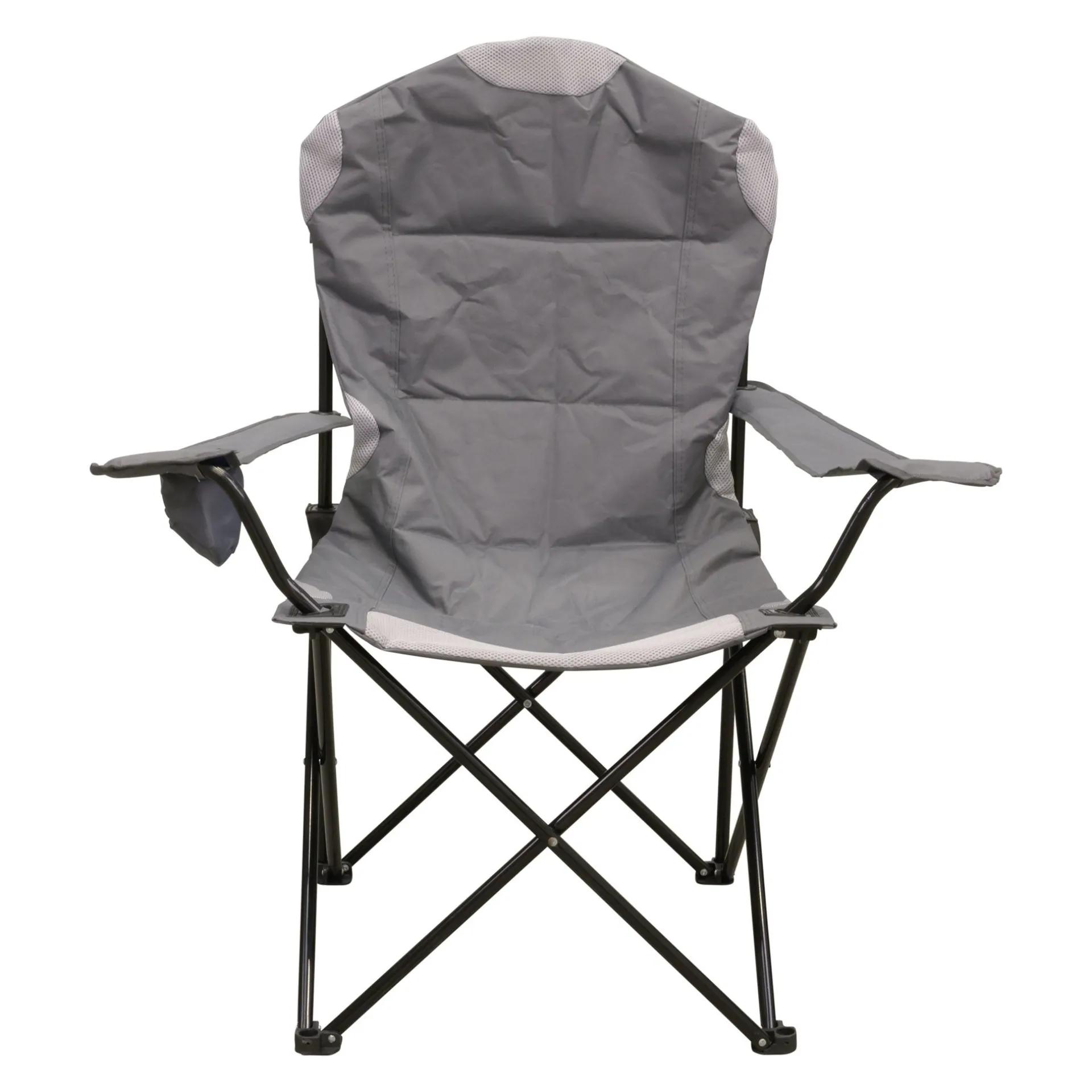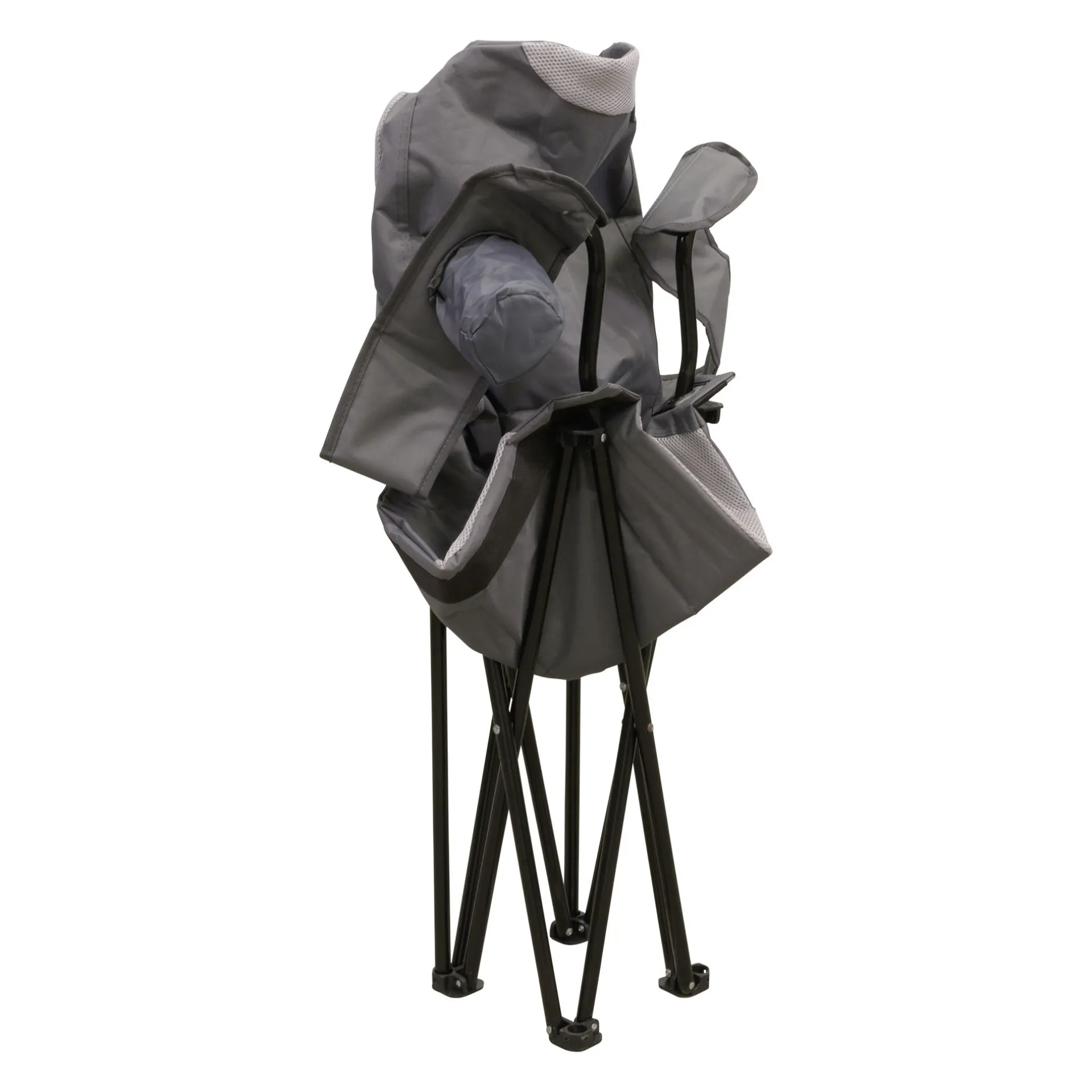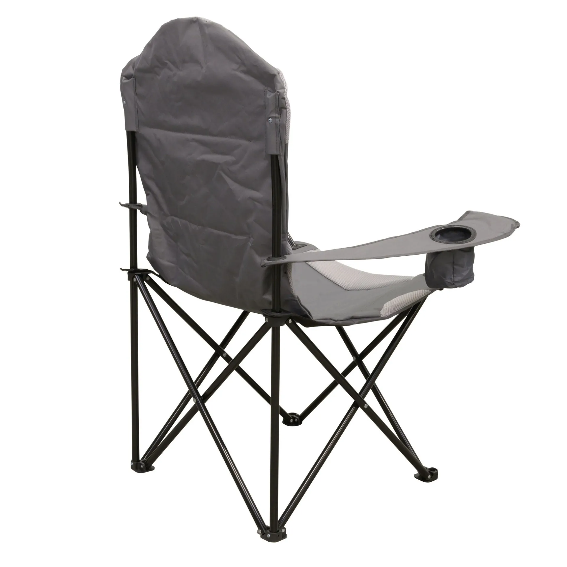 Een lichtgewicht opvouwbare stoel. Deze vouwstoel beschikt over comfortabele armleggers met daarin een houder voor drinken. Zeer compact op te vouwen vervoeren.