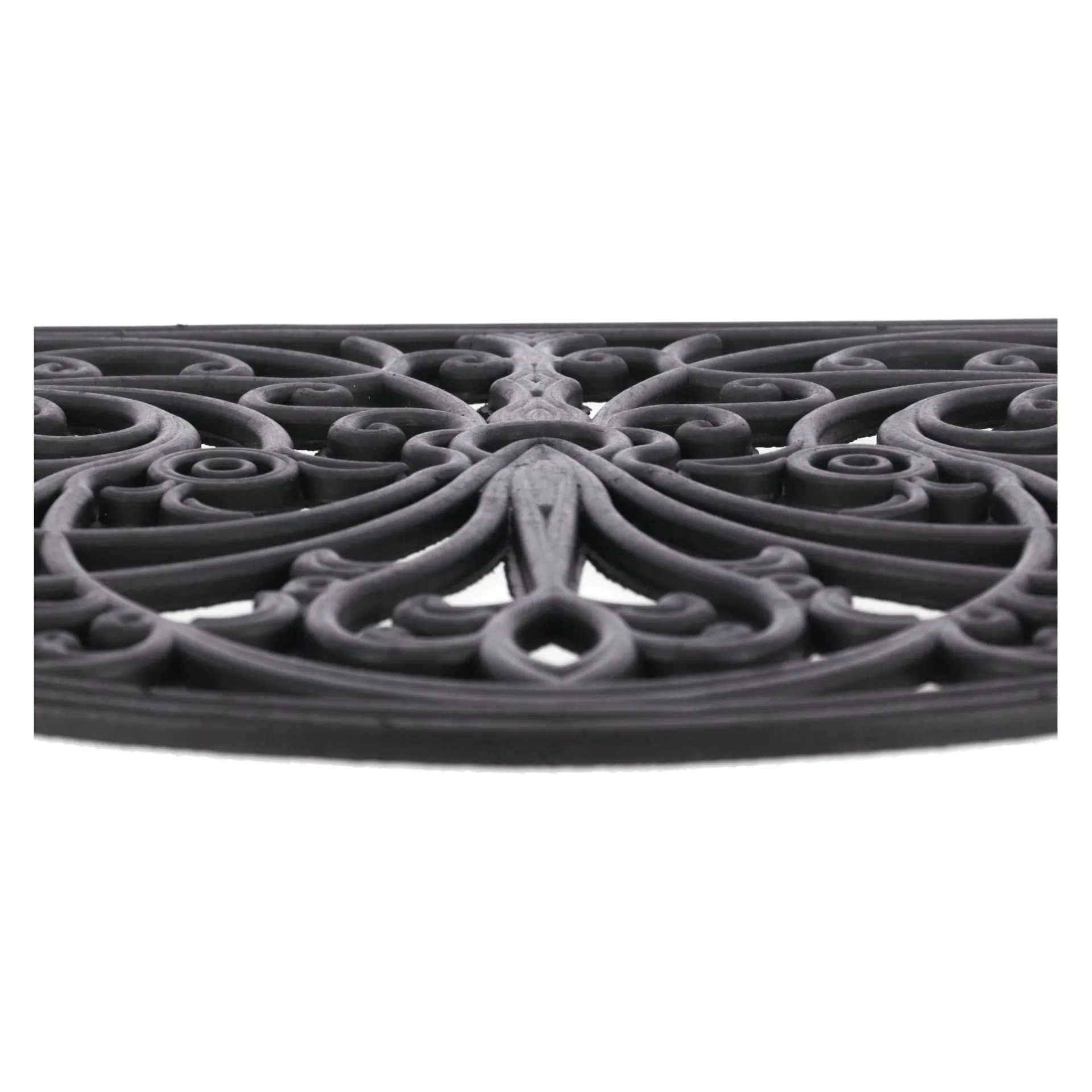 De halfronde, rubberen deurmat is een duurzame en stijlvolle mat, ontworpen om vuil en vocht van schoenen op te vangen voordat men naar binnen stapt. Gemaakt van stevig en weerbestendig rubber, is deze mat ideaal voor zowel binnen- als buitentoepassingen, zoals de entree, hal, of veranda.