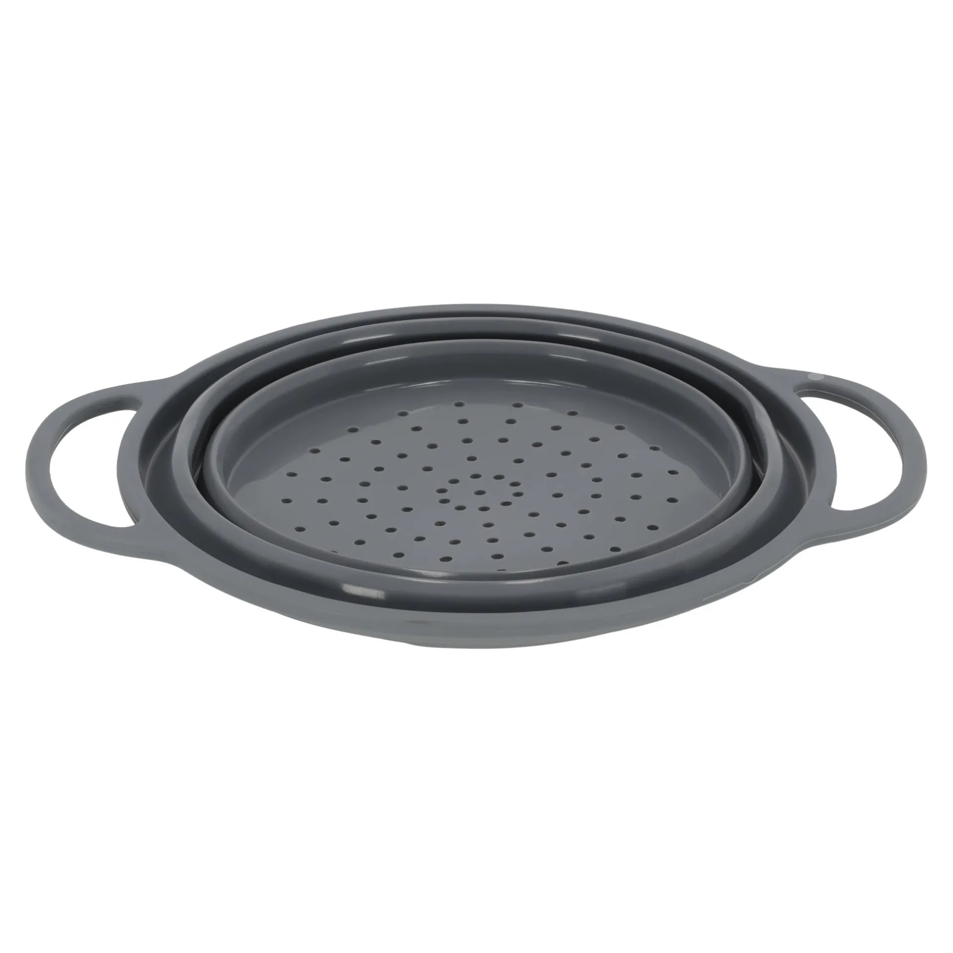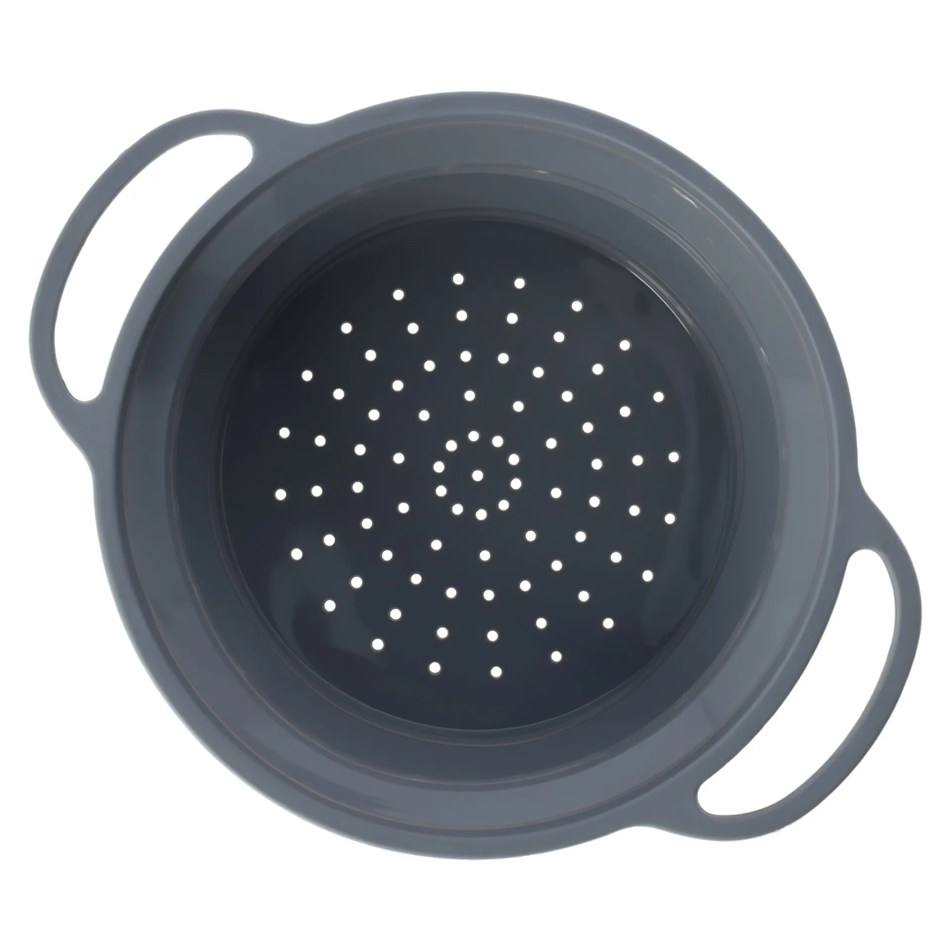Het siliconen vergiet is een flexibel en ruimtebesparend keukengerei, ideaal voor het afgieten van pasta, groenten, fruit en andere ingrediënten.Het materiaal zorgt voor een stevige grip en maakt het vergiet slipvast op natte oppervlakken.