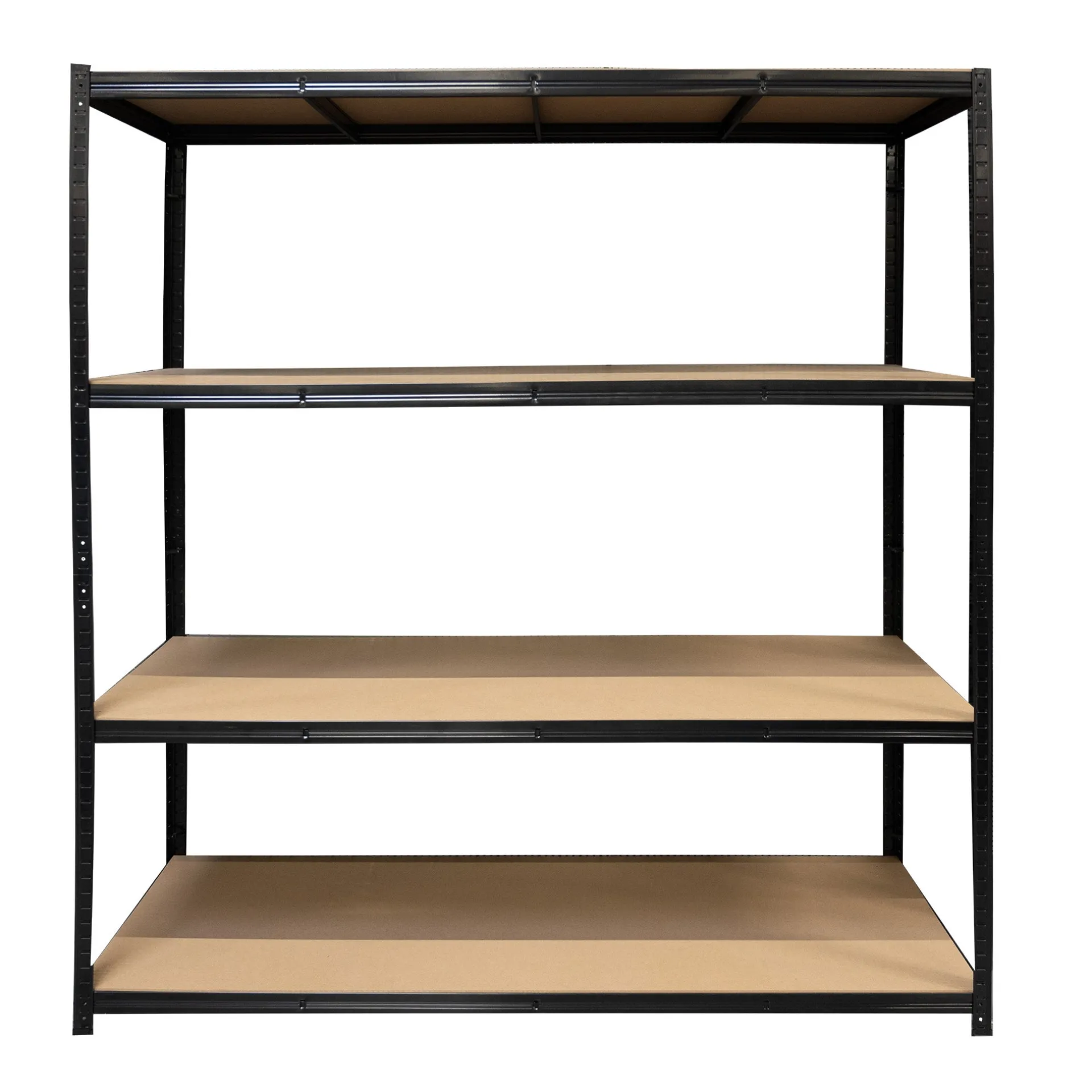 Een ruime en stevige opbergoplossing voor de garage, werkplaats of berging. Gemaakt van hoogwaardig MDF en een stevig metalen frame, wat zorgt voor betrouwbaarheid en duurzaamheid. Dankzij de universele zwarte kleur past het rek gemakkelijk in elk interieur. De grote legplanken bieden voldoende ruimte voor gereedschap, dozen en andere items, waardoor alles netjes en toegankelijk blijft.