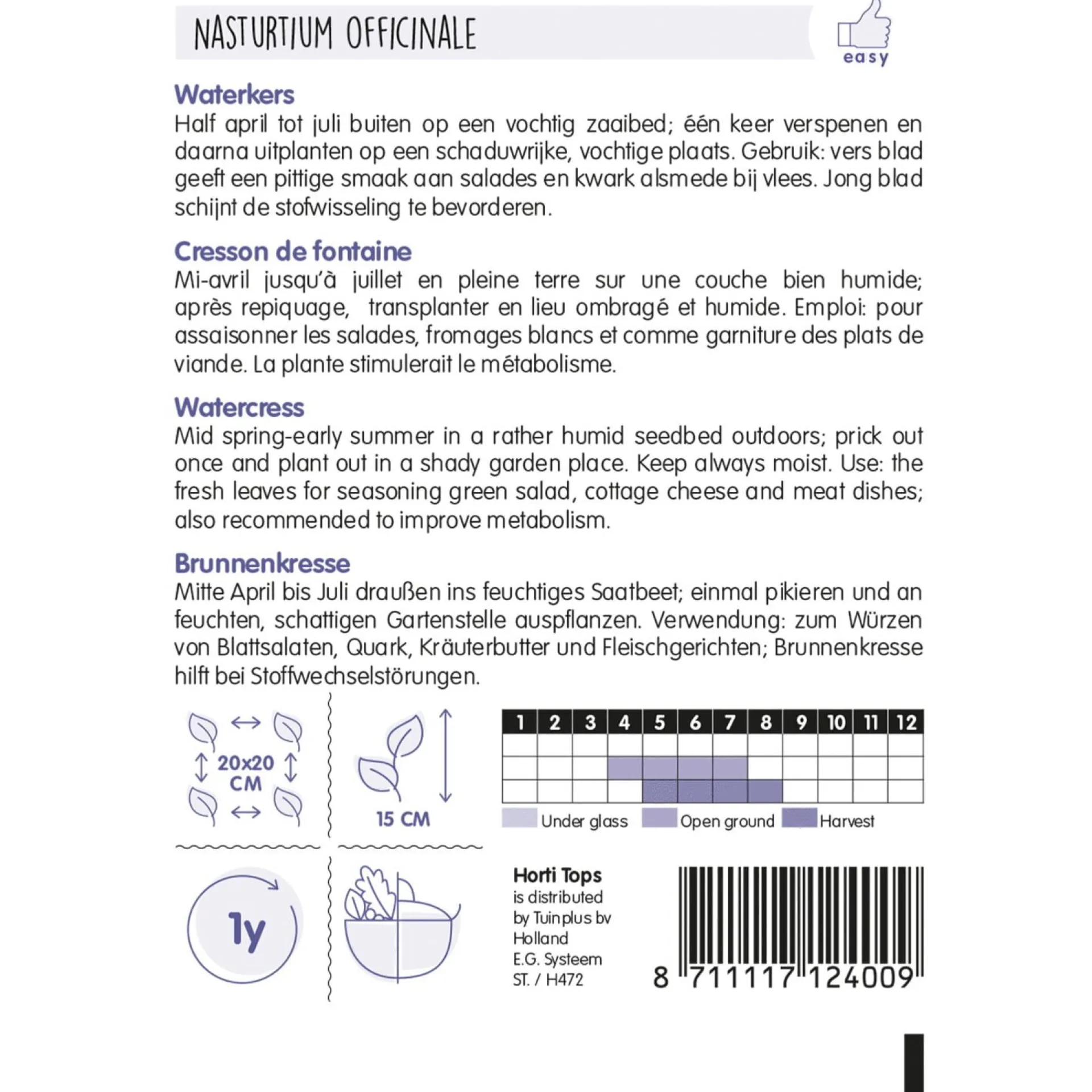 Een speciale plant voor aquaponics en watertuinen. Waterkers groeit gemakkelijk in een wateromgeving en helpt de waterkwaliteit te verbeteren, terwijl het ook een uitstekende decoratieve toevoeging is voor vijvers. Het wordt vaak gebruikt als toevoeging aan salades, soepen en als garnering.