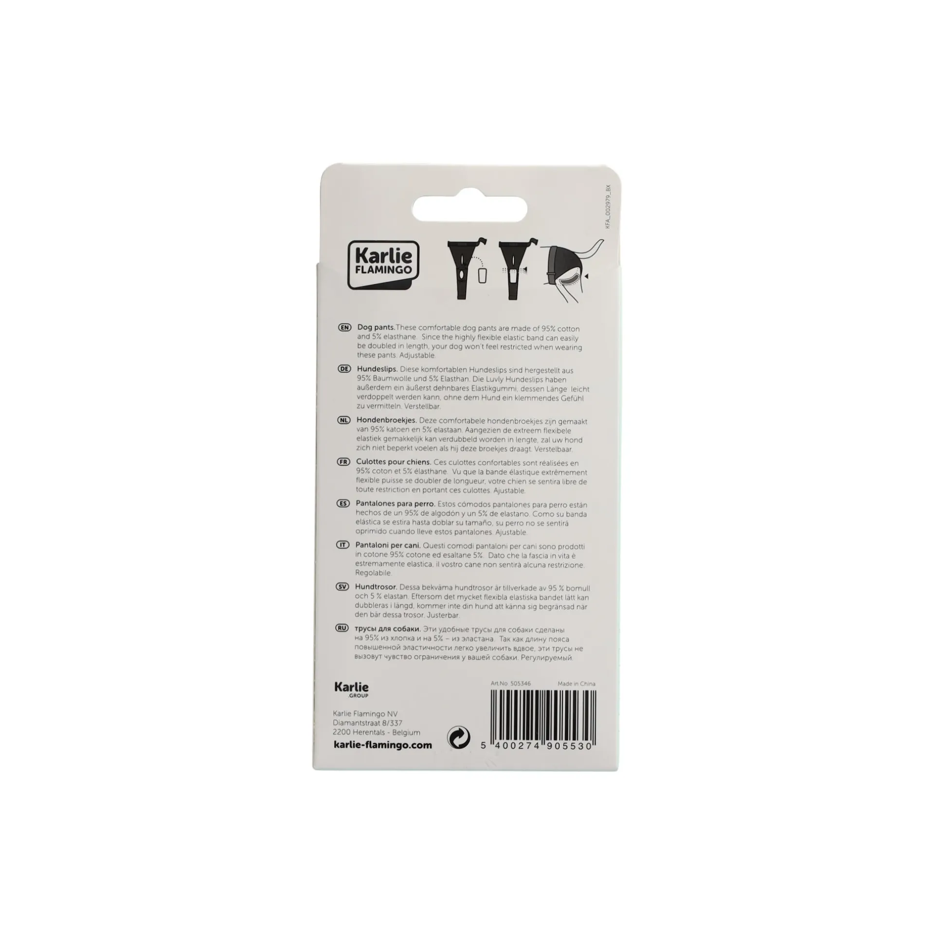 De hondenonderbroek van Karlie Flamingo is ontworpen voor loopsheid en incontinentie. De verstelbare tailleband en staartopening zorgen voor een comfortabele pasvorm en eenvoudige aanpassing.