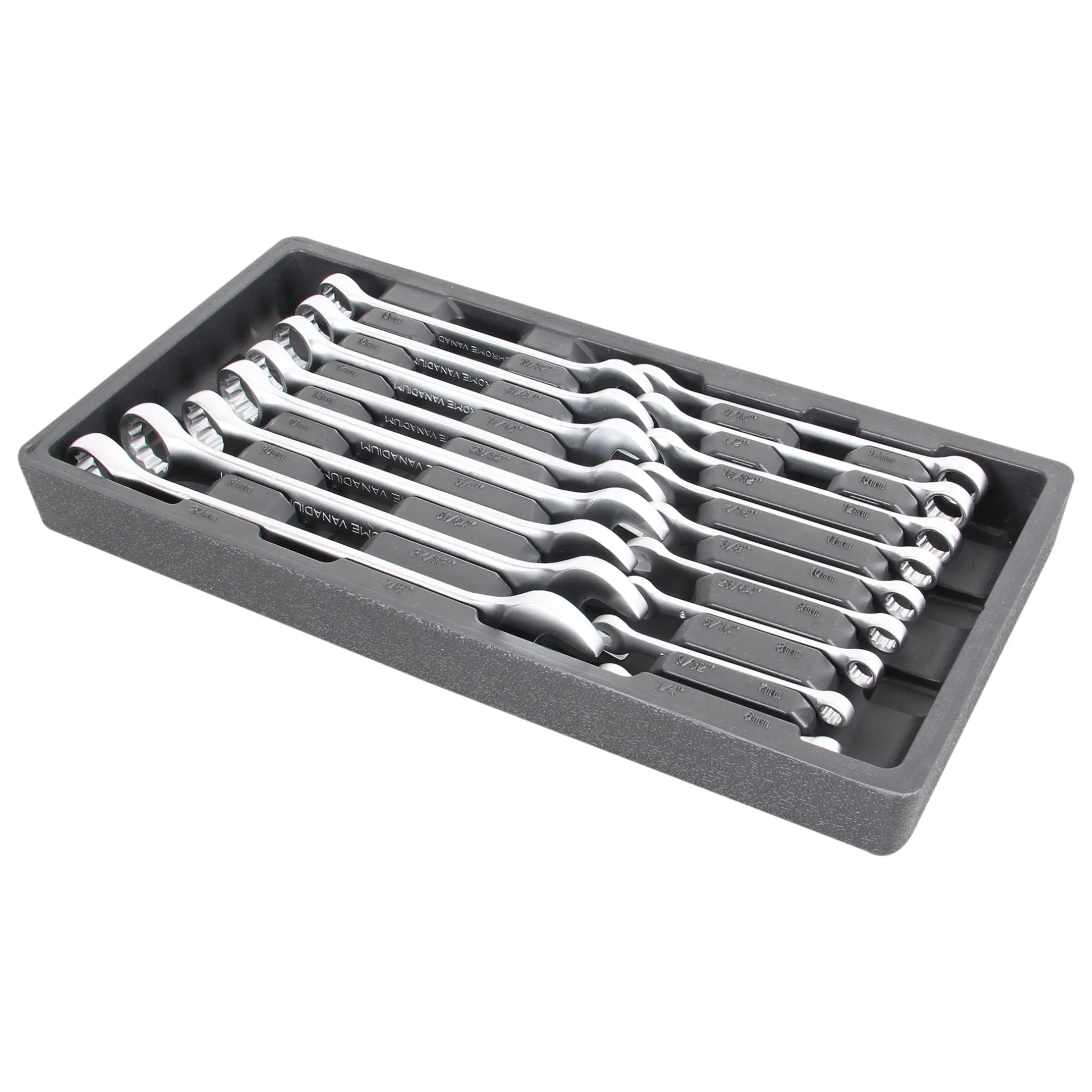De Ring-/Steeksleutelset 18-delig combineert een ringvormig en open uiteinde in één gereedschap, wat veelzijdigheid biedt bij het vast- en losdraaien van moeren en bouten. Ideaal voor autowerk en mechanische reparaties.