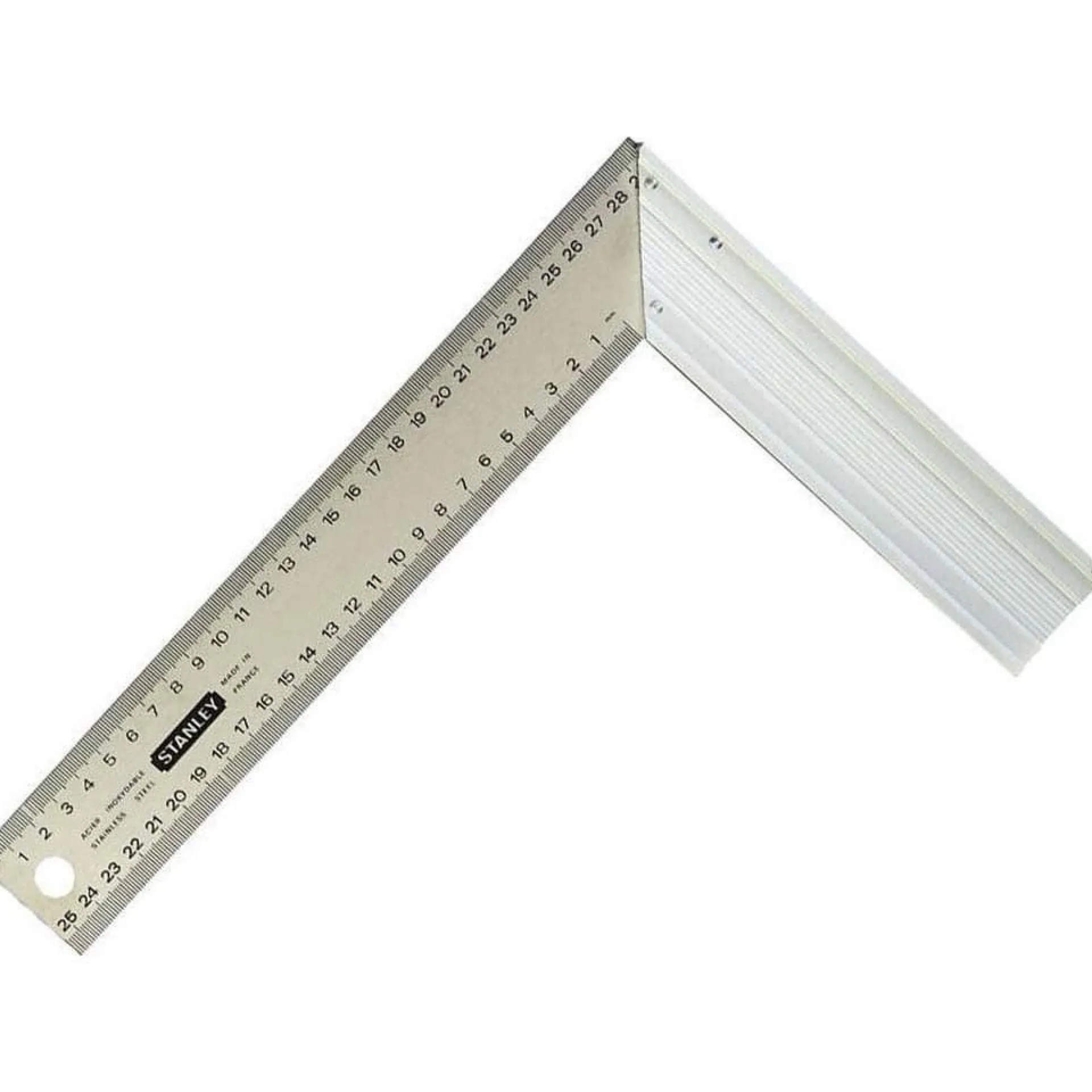 De winkelhaak van 200 x 300 mm heeft een roestvrij stalen blad. De millimeterverdeling is aan beide zijden met foto gegraveerd voor een uitstekende zichtbaarheid. De drievoudige verstekhak is geprofileerd in geëxtrudeerd aluminium voor duurzaamheid en nauwkeurigheid. Er is een afgeschuinde hiel voor het markeren van hoeken van 90 en 45 graden