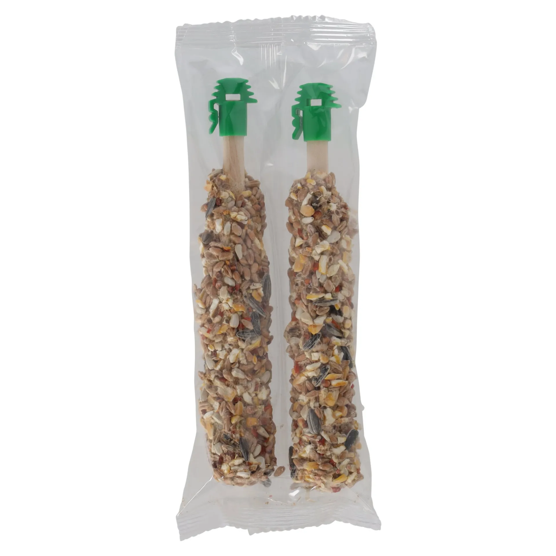Dit is een smakelijke traktatie voor uw konijn en/of cavia. In de verpakking zitten twee stokjes met een handige ophangclip, zodat je de snack gemakkelijk overal op kunt hangen.
