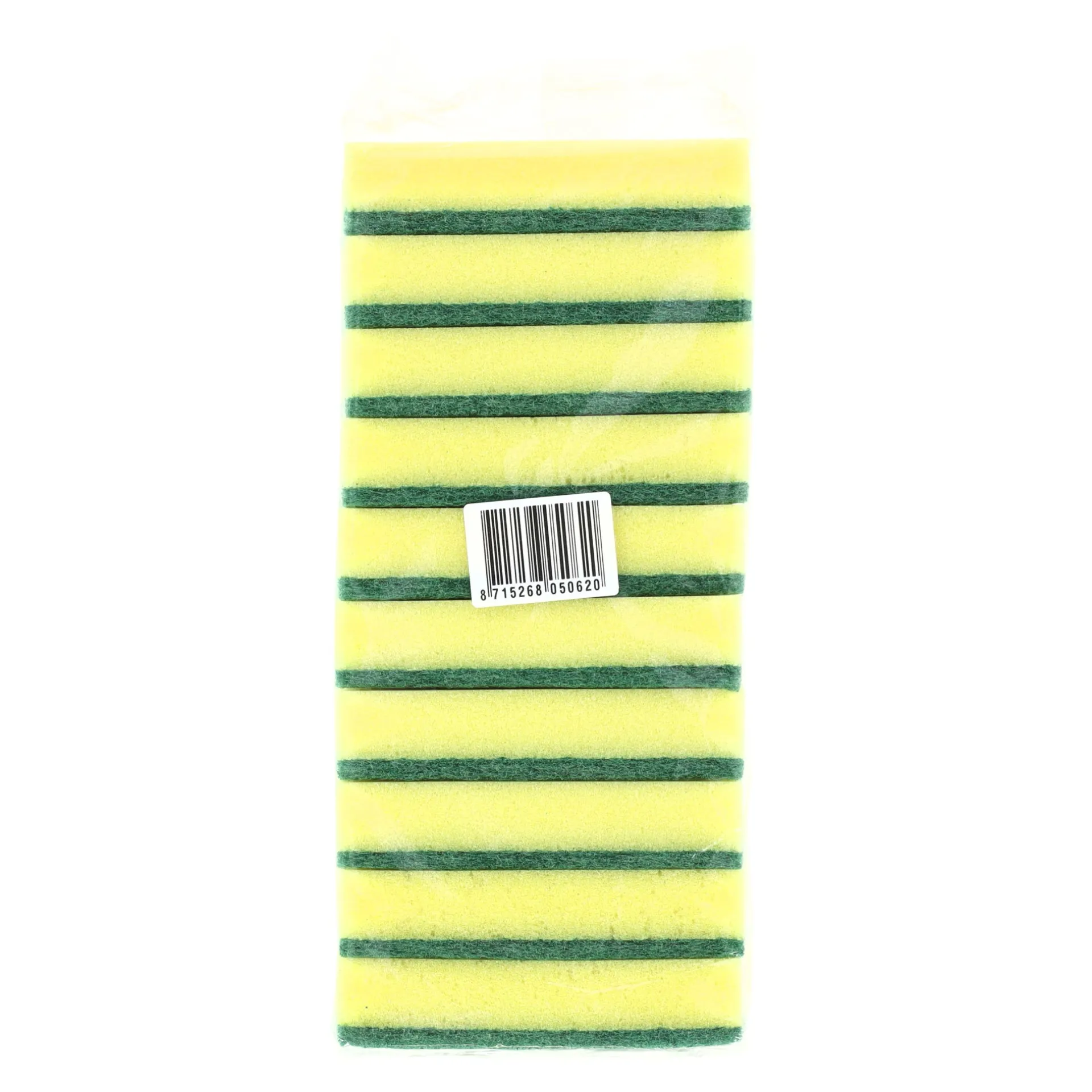 De schuursponsset van 140 x 98 mm bevat 10 duurzame, multifunctionele sponzen, ideaal voor zware schoonmaakklussen in huis.
