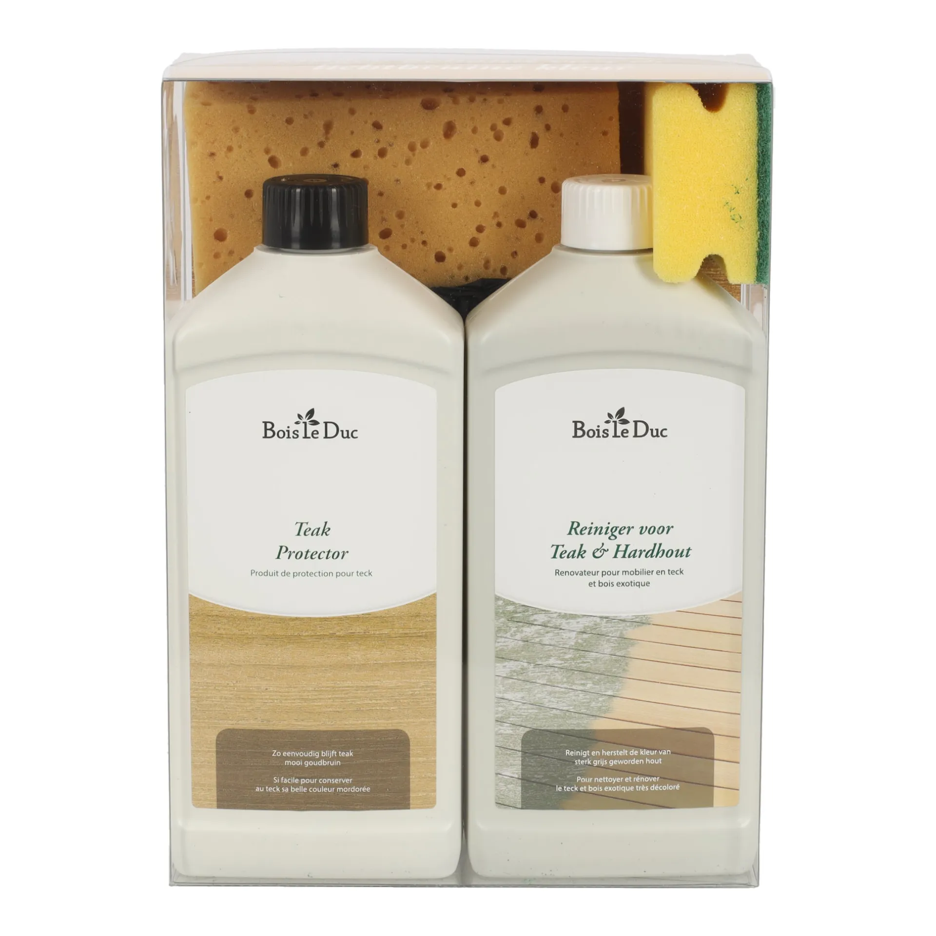 De kit teak 3-In-1 is een alles-in-één reinigings- en onderhoudsset, speciaal ontworpen voor teak- en houten meubelen. Deze kit bevat alles wat je nodig hebt om je teakmeubelen te reinigen, te herstellen en te beschermen tegen weersinvloeden. De 3-In-1 formule biedt een efficiënte reiniging, verwijdert vuil en vlekken, en verzorgt het hout met een beschermende laag die de levensduur verlengt. De set is eenvoudig in gebruik en helpt je om de natuurlijke schoonheid van teak te behouden, terwijl het hout tegelijkertijd wordt beschermd tegen verwering, schimmels en verkleuring. Perfect voor het onderhouden van teak tuinmeubelen of andere houten oppervlakken die blootgesteld worden aan buitenomstandigheden.
