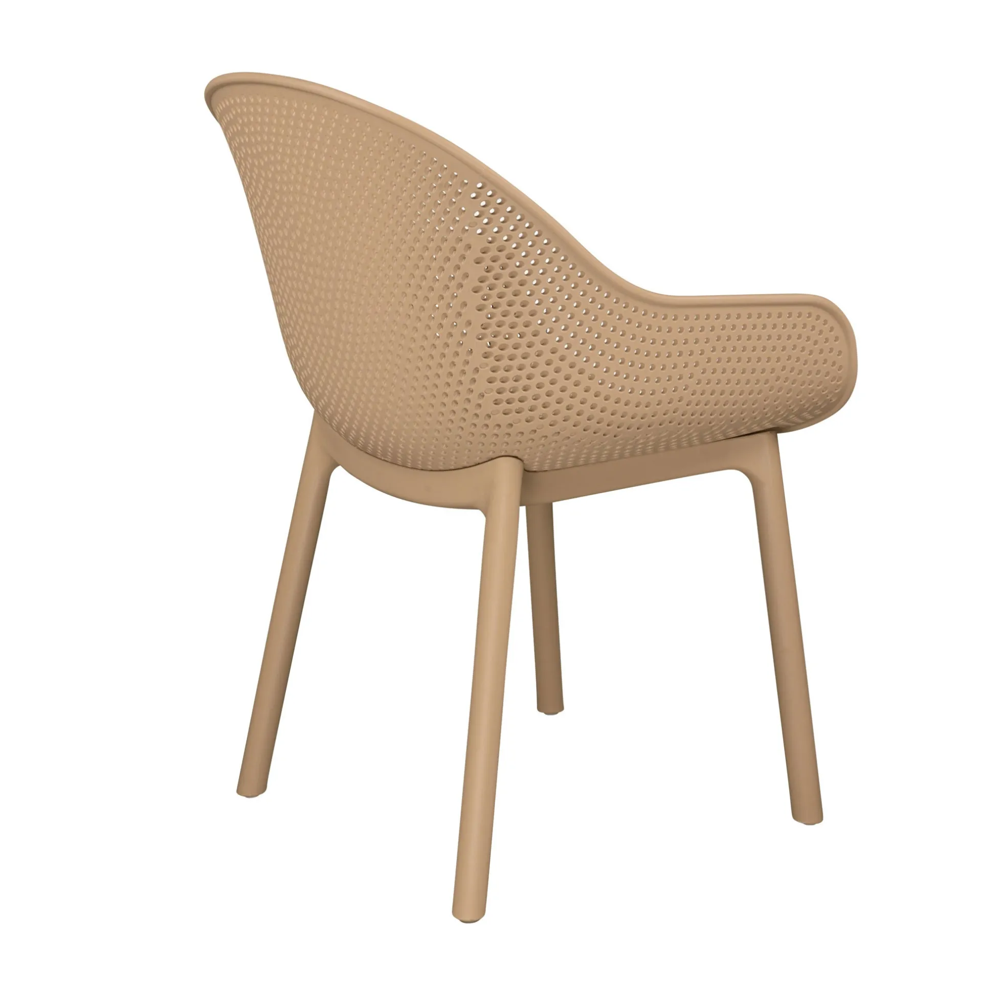 Deze stijlvolle stoel heeft een moderne uitstraling met een subtiel geperforeerd patroon, waardoor hij een luchtige en eigentijdse look krijgt. De comfortabele stoel biedt zowel stevigheid als een prettige zitervaring. De warme kleur voegt een speels accent toe aan elke ruimte, terwijl het materiaal zorgt voor duurzaamheid en eenvoudig onderhoud. Perfect voor zowel binnen als buiten gebruik.