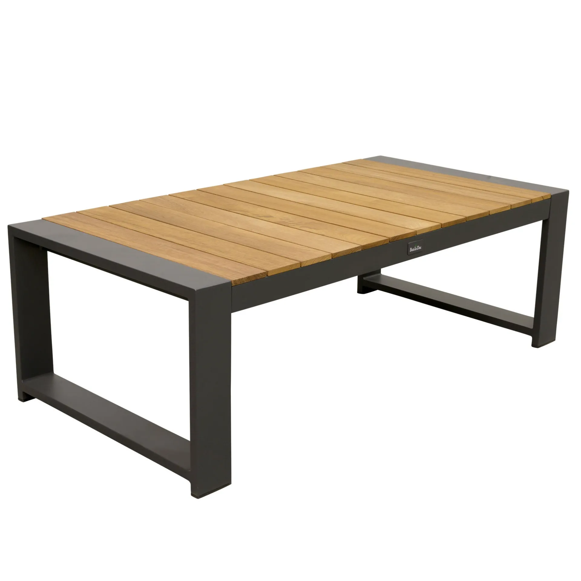 De Tafel Foxton 116x60cm Antra combineert moderne stijl met natuurlijke elementen. Het stevige aluminium frame zorgt voor stabiliteit en duurzaamheid, terwijl het elegante teak tafelblad een warme, natuurlijke uitstraling toevoegt. Deze tafel is perfect voor je tuin, terras of balkon en biedt zowel een praktische als stijlvolle oplossing voor buiten dineren of genieten van een drankje. De Foxton Antra tafel is een tijdloze keuze die moeiteloos in verschillende buitenomgevingen past.
