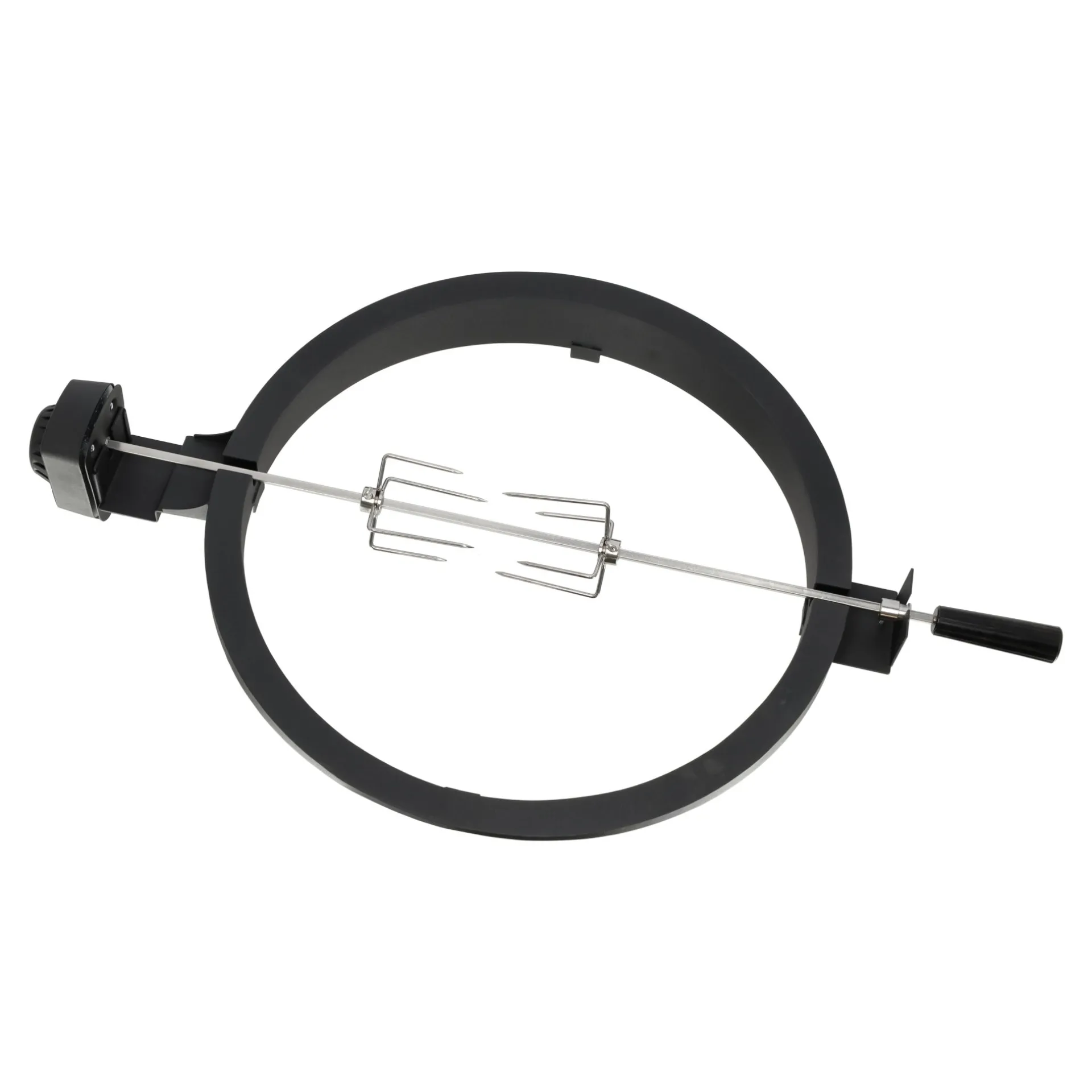 Het draaiend spit is een handige en efficiƫnte accessoire voor je KMD-22 barbecue, waarmee je het grillen van grotere stukken vlees, zoals kip, varkensvlees of lamsvlees, naar een hoger niveau tilt. Het spitsysteem zorgt ervoor dat het vlees gelijkmatig roterend wordt gegrild, waardoor het van buiten krokant wordt en van binnen sappig blijft. Het draaimechanisme wordt aangedreven door een motor, die zorgt voor een constante draaisnelheid voor een perfecte garing. Het draaiend spit KMD-22 is eenvoudig te installeren en te gebruiken, en is een geweldige aanvulling voor barbecue-liefhebbers die hun grillervaring willen uitbreiden en meer gevarieerde gerechten willen bereiden. Het is geschikt voor gebruik op de KMD-22 barbecue en maakt het grillen van grote stukken vlees gemakkelijker en smakelijker.