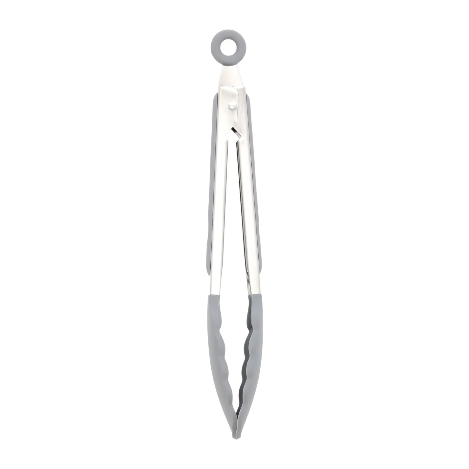 Hoge temperatuurbestendige siliconen keukentang. Met een vergrendelmechanisme voor eenvoudig opbergen en een antiaanbakgedeelte voor gebruiksgemak en krasvrij gebruik in de pan.