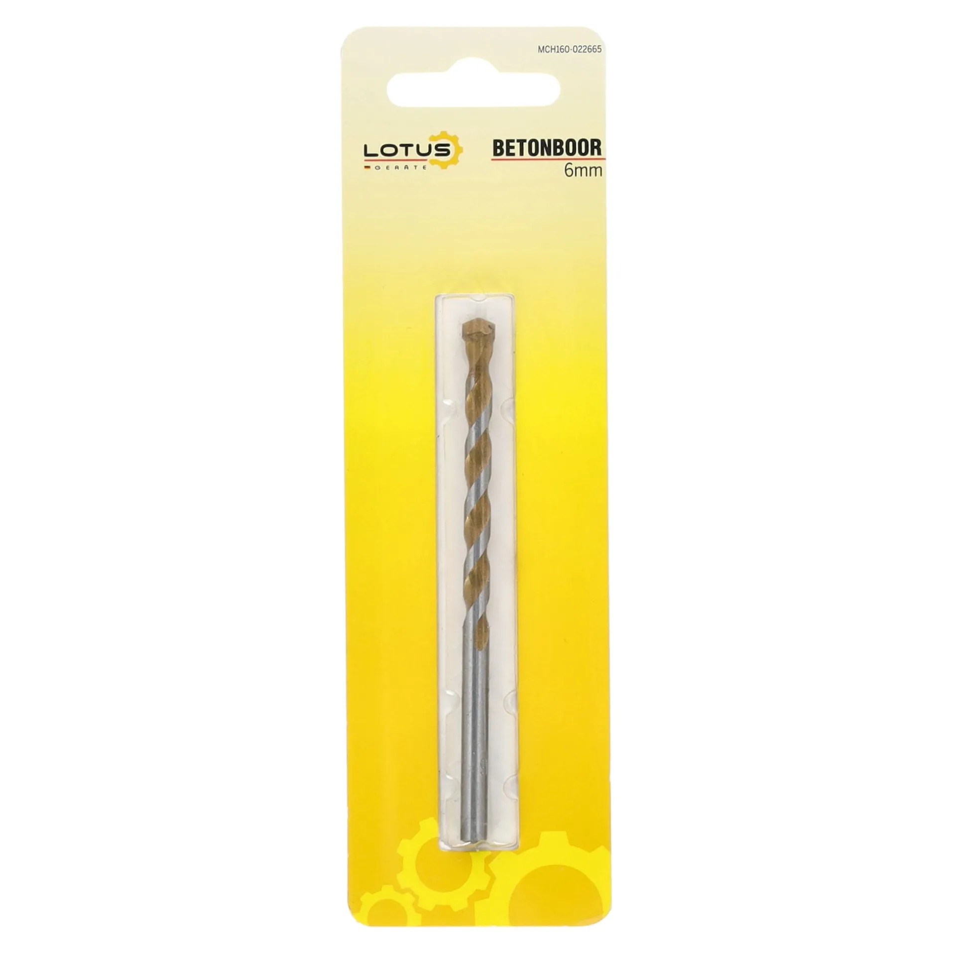 Deze Lotus betonboor 6 mm is geschikt voor het boren in beton. De boor heeft een spiraalvormige uitvoering en is voorzien van een hardmetalen punt. Is geschikt voor gebruik met een boormachine.