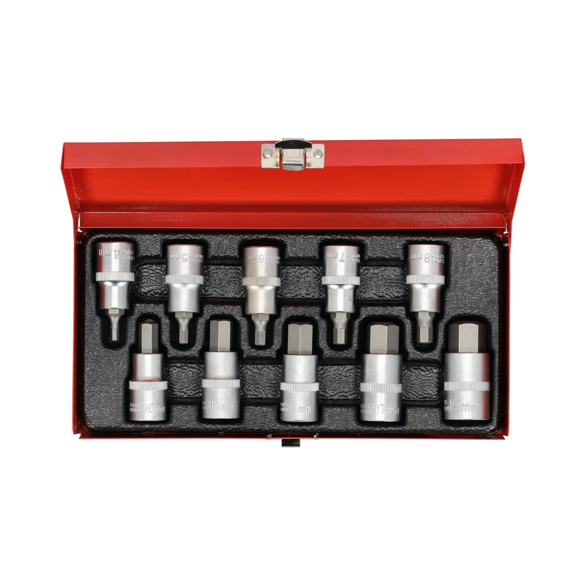 Een praktische en betrouwbare set voor het werken met bevestigingselementen. Gemaakt van duurzaam staal voor een lange levensduur en slijtvastheid. Bevat tien doppen in verschillende maten, wat het een handige keuze maakt voor reparatie- en montagewerkzaamheden. Geschikt voor zowel professioneel als huishoudelijk gebruik.