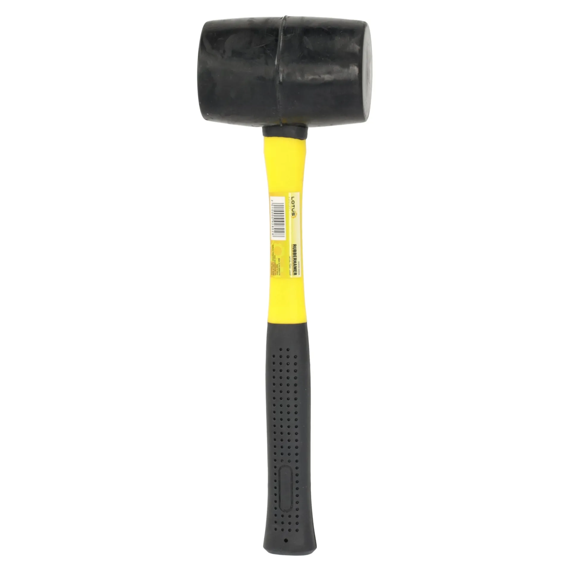 Rubberhamer van Lotus met vezelstalen handvat, geschikt voor montage en tegelwerk. Het rubber dempt de slag en beschermt het materiaal.