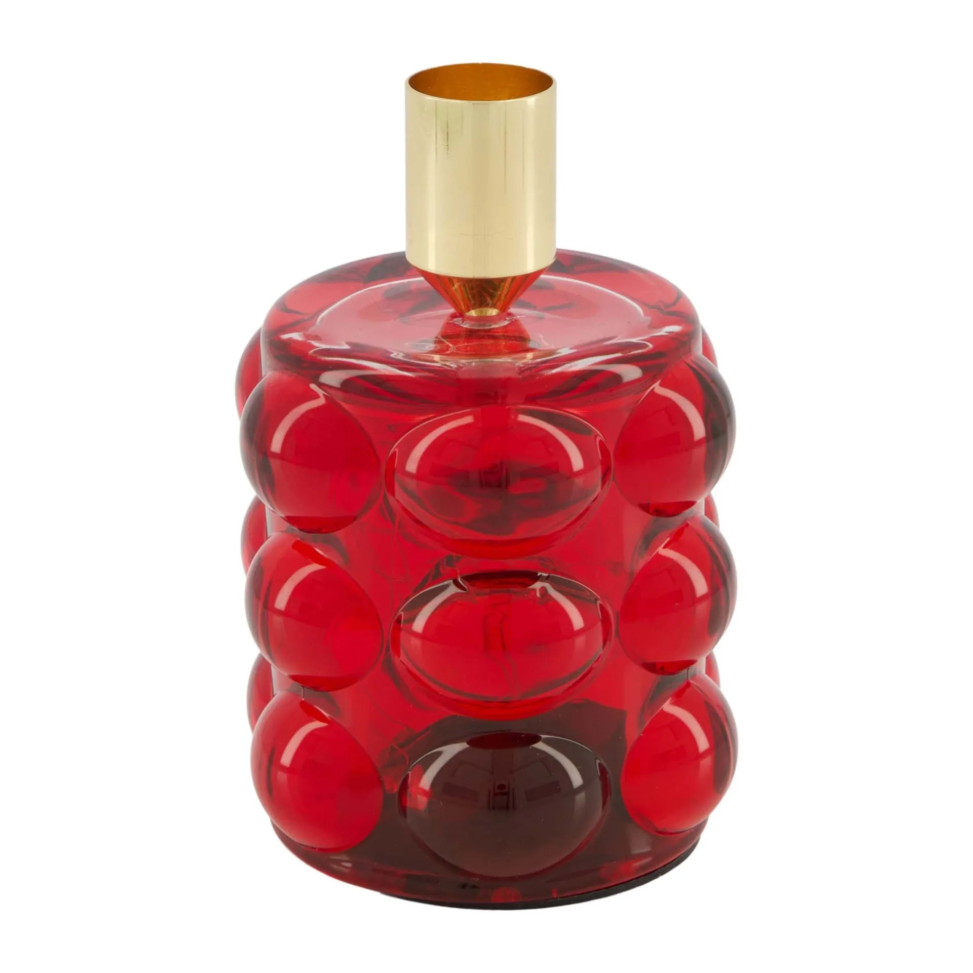 Glazen kaarshouder met compact formaat en decoratieve uitstraling, geschikt voor theelicht of kleine stompkaars.