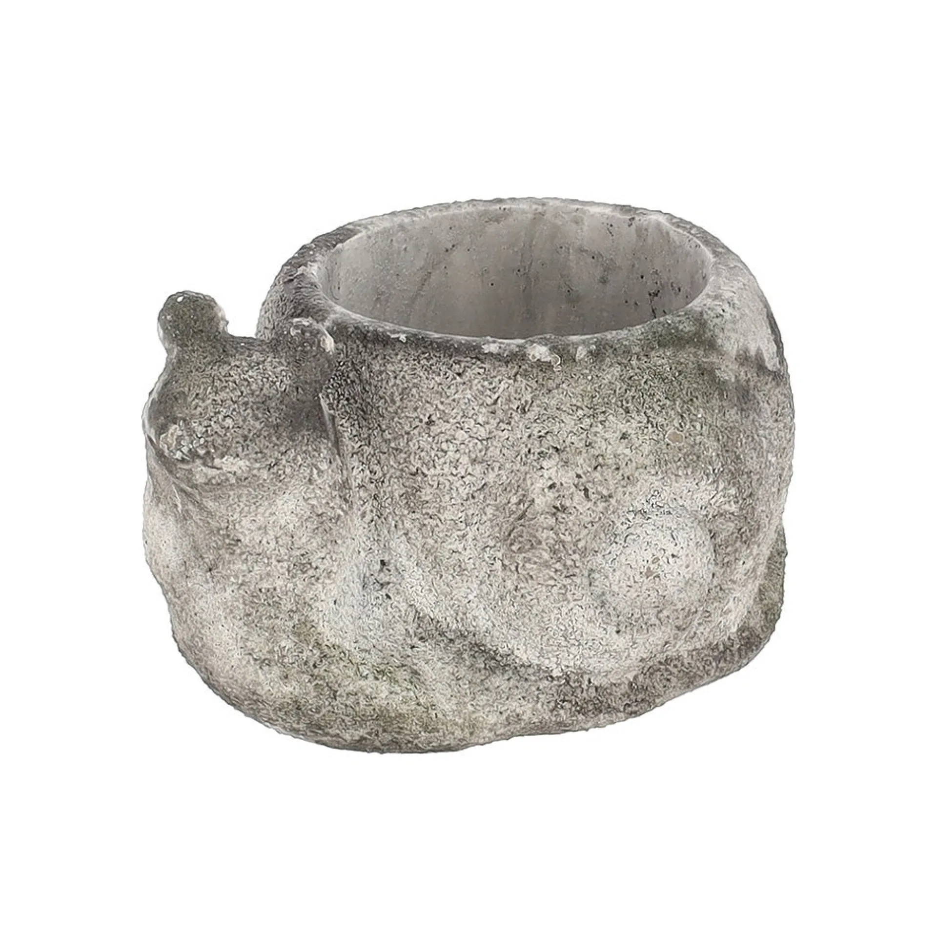 Deze pot in de vorm van een slak heeft een natuurlijke cementlook met subtiele verwering. Dankzij het compacte formaat is hij ideaal voor kleine planten of vetplantjes. Leuk als decoratief accent voor zowel binnen als buiten.