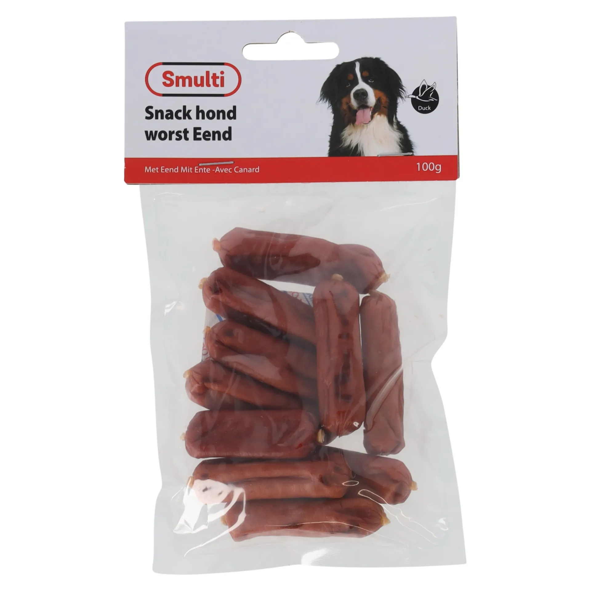 De eend worst voor honden is een smakelijke en voedzame traktatie gemaakt van hoogwaardig eendenvlees. Het is een uitstekende bron van eiwitten en perfect als beloning of als extra traktatie. Laat de hond niet alleen met kauwmateriaal. Zorg voor vers water.