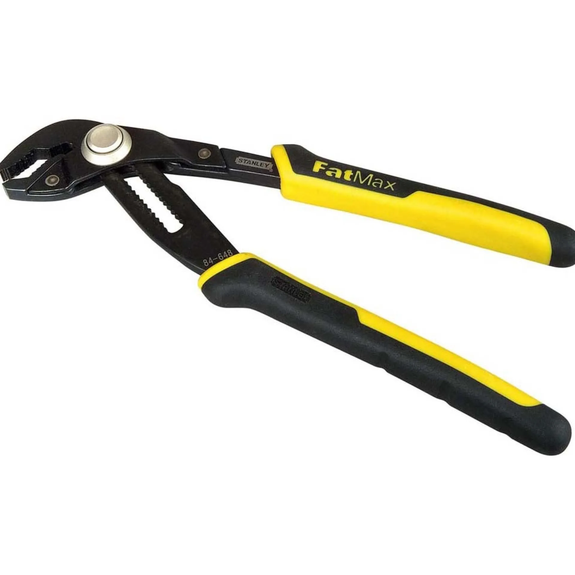 De Stanley FatMax Pushlock waterpomptang (0-84-648) is ideaal voor uiteenlopende klussen in en rondom het huis. Dankzij de ergonomische bi-materialen handgrepen ligt de tang prettig in de hand. Met de pushlock-drukknop kunt u de benen in 17 posities verstellen met slechts één druk op de knop. Het inductie geharde bekken geeft optimale grip en de smalle kop maakt het mogelijk om ook in moeilijk bereikbare plaatsen te werken. Het bekken heeft een variabele capaciteit van 62 tot 250mm. De tang zelf is 254mm lang, weegt 380gram en heeft een binnenbekbreedte van 51mm.