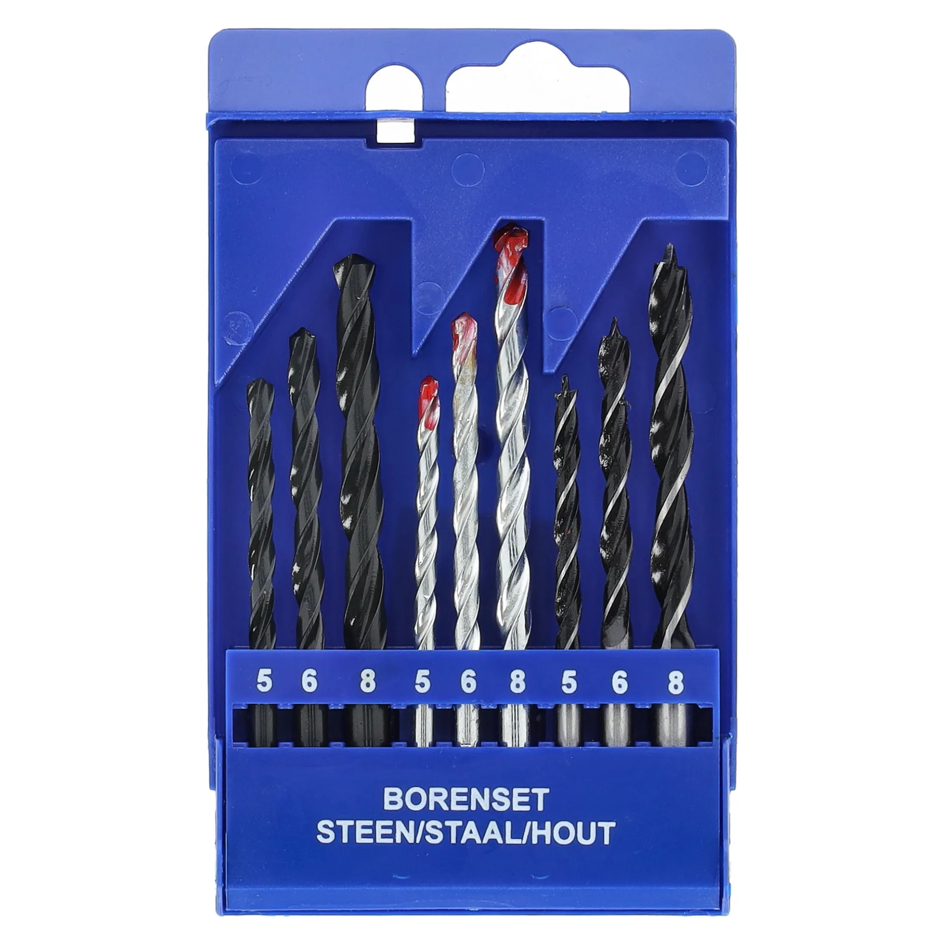Deze borenset is geschikt voor het boren in steen, staal en hout en wordt geleverd in een compacte kunststof houder. De set bevat boren in de maten 5, 6 en 8 mm, zodat je voor veel voorkomende boorklussen direct de juiste maat bij de hand hebt. Door de duidelijke indeling blijven de boren overzichtelijk opgeborgen en gemakkelijk uit te nemen. Ideaal voor algemeen gebruik bij klussen in en rondom het huis.
