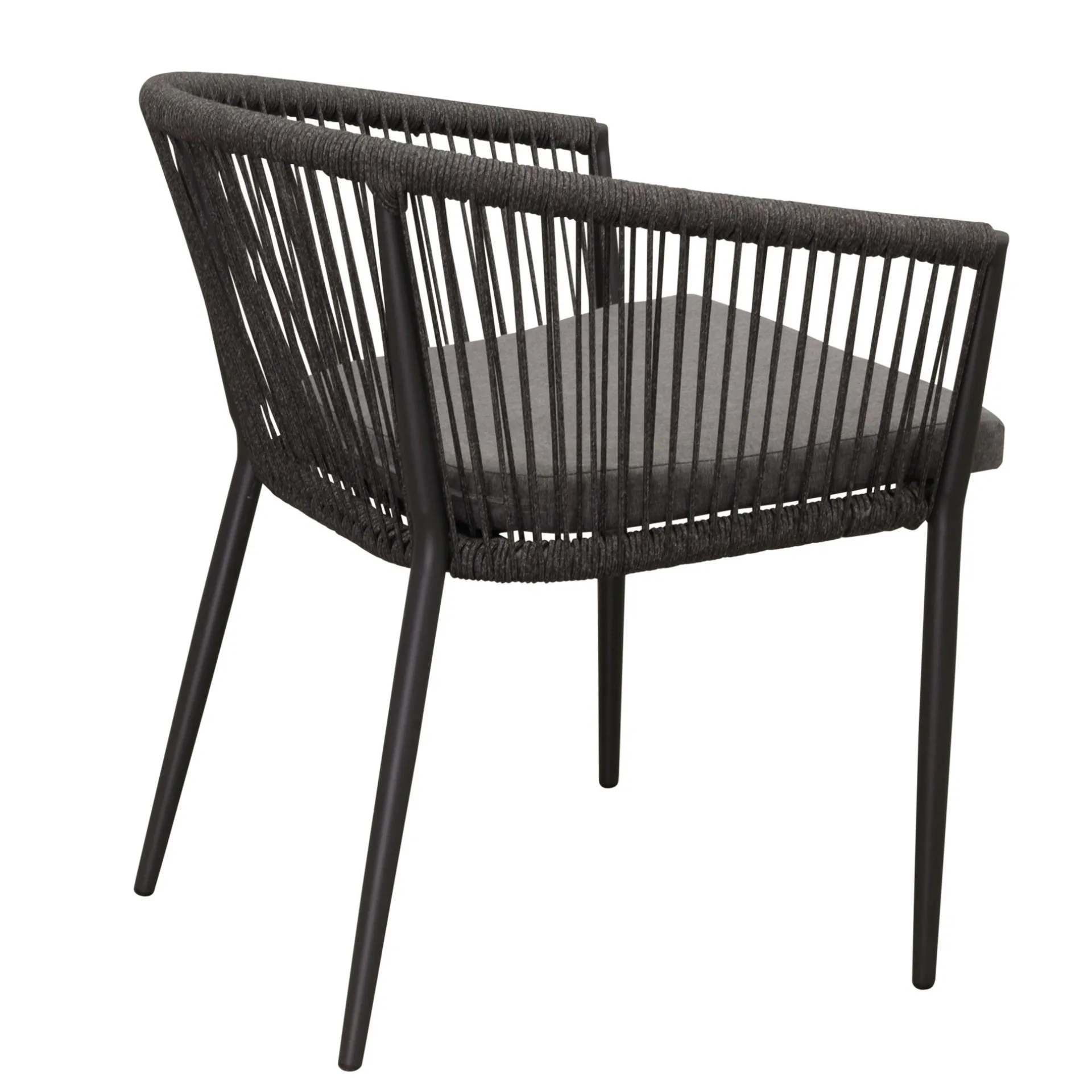De stoel in antraciet is een stijlvolle en comfortabele zitoplossing voor zowel binnen als buiten. Het stevige aluminium frame is licht van gewicht en roestvrij, wat de stoel perfect maakt voor langdurig buitengebruik. De rugleuning is afgewerkt met touw, wat zorgt voor een decoratieve en eigentijdse uitstraling. Het meegeleverde kussen biedt extra zitcomfort. Dankzij het moderne en minimalistische ontwerp past de stoel moeiteloos bij diverse interieur- en tuinsettings.