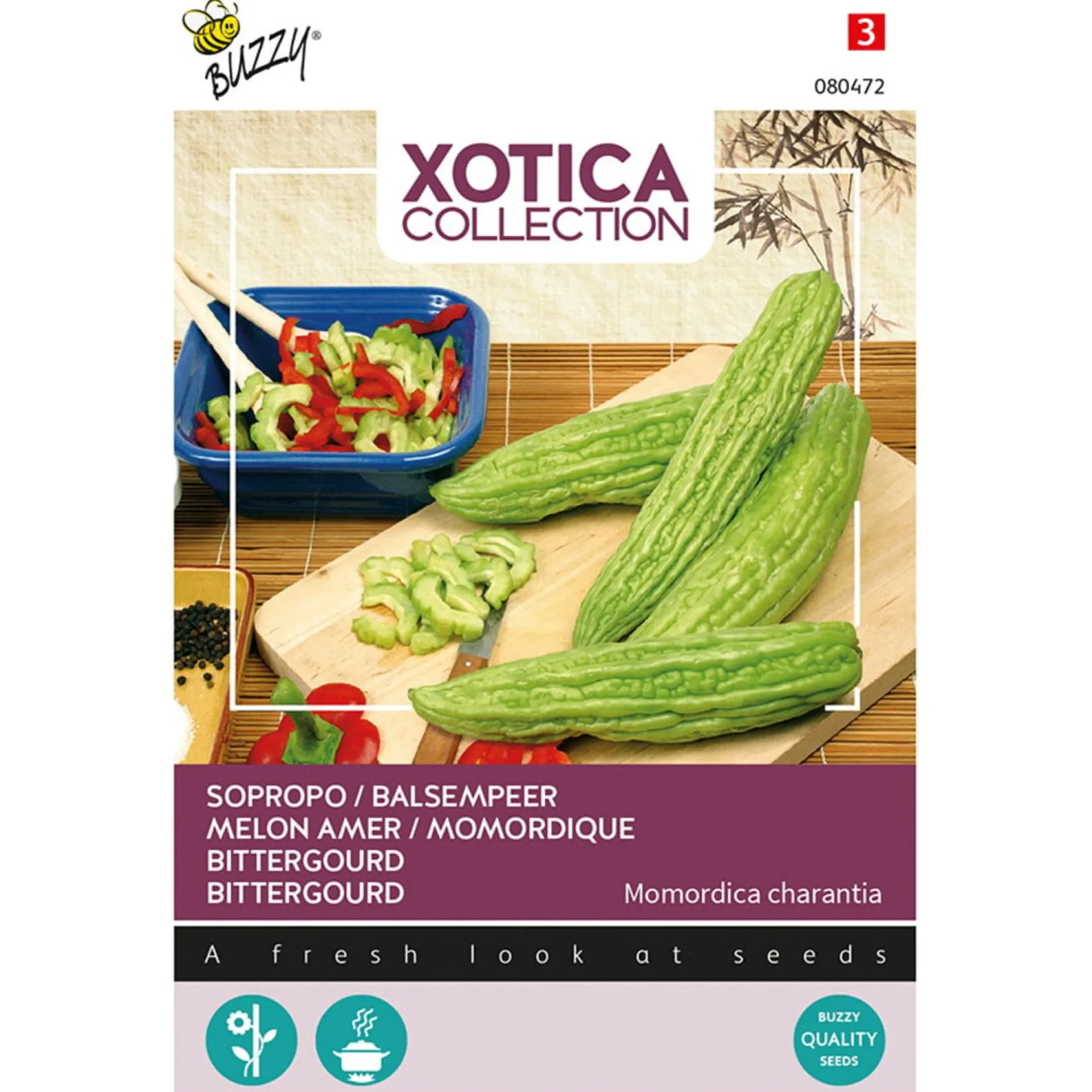 Sopropo is een tropische vruchtgroente met kenmerkende, geribbelde groene vruchten en bittere smaak. Veelgebruikt in Aziatische en Surinaamse keuken. Geschikt voor teelt in kas of warme, beschutte buitenplek.