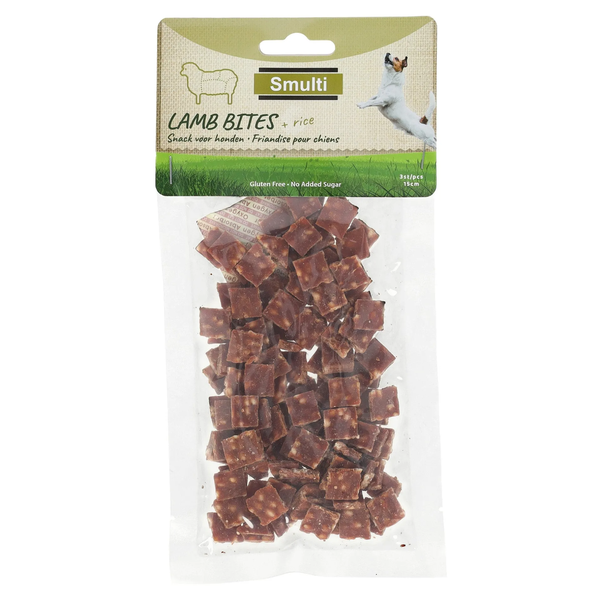 De Hapki lam + rijsthapjes zijn een heerlijke en voedzame traktatie voor honden, gemaakt van mals lamsvlees en licht verteerbare rijst. Deze hapjes zijn rijk aan eiwitten en bieden een smakelijke, gezonde snack voor honden met een gevoelige maag of voedselallergieƫn. Ze bevatten geen kunstmatige toevoegingen en zijn perfect als beloning of tussendoortje. Geschikt voor honden van alle rassen en leeftijden, deze lam en rijst hapjes bieden je hond een natuurlijke en gezonde traktatie die hij of zij zeker zal waarderen! Laat de hond niet alleen met kauwmateriaal. Zorg voor vers water.