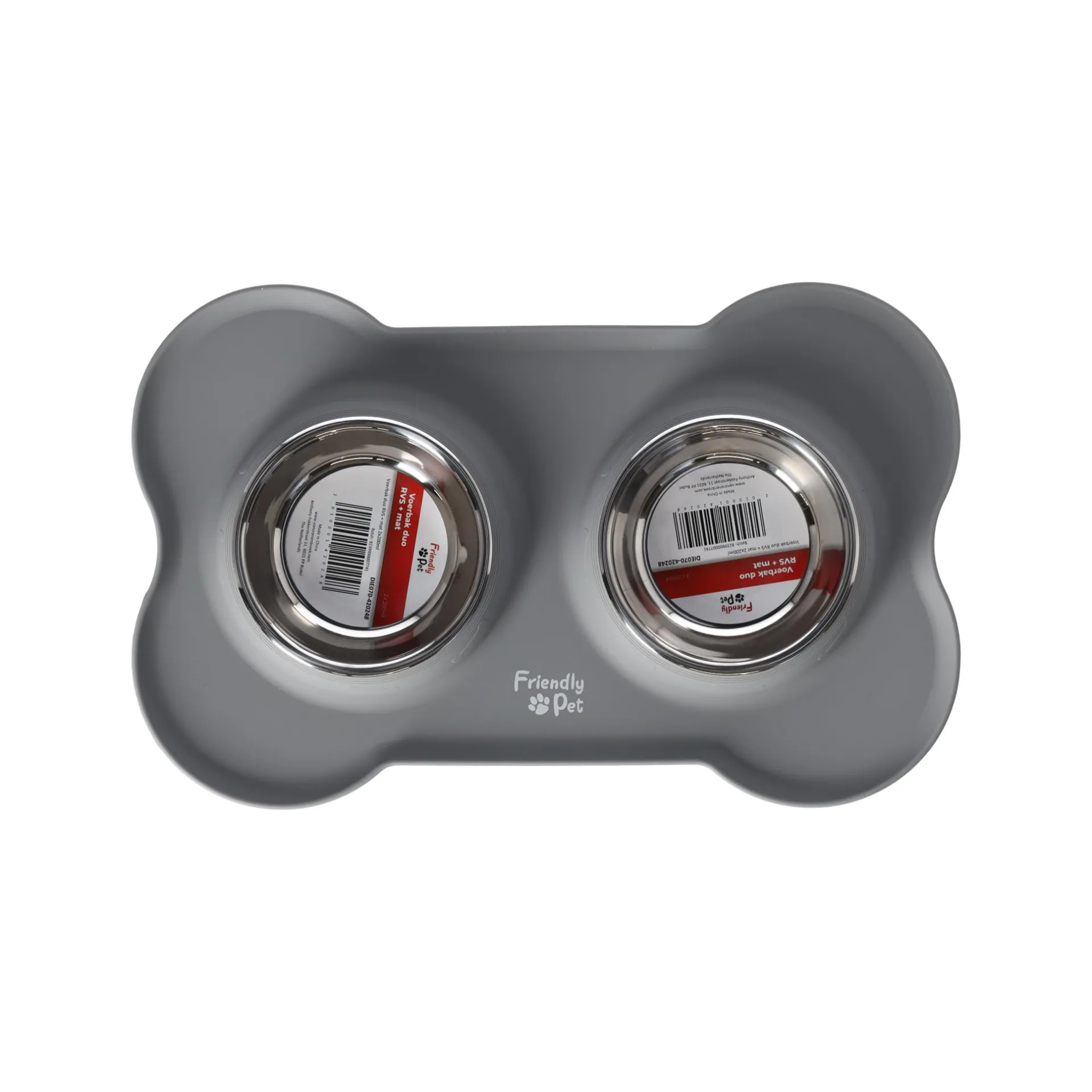 Productnaam:Voerbak duo RVS + mat 2x200ml
