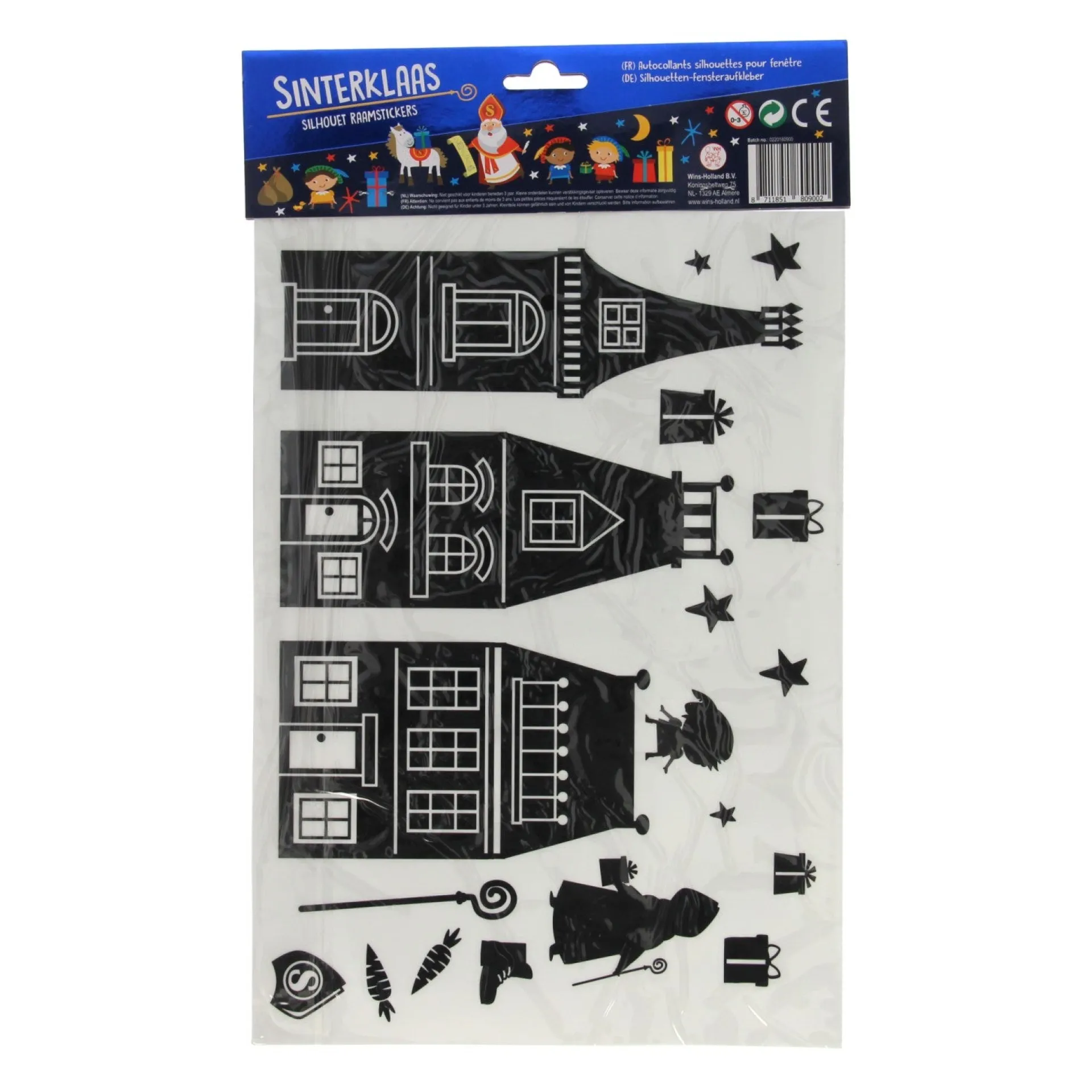 Sinterklaas silhouet raamstickers met huisjes, sterren en maan om je ramen feestelijk te versieren.